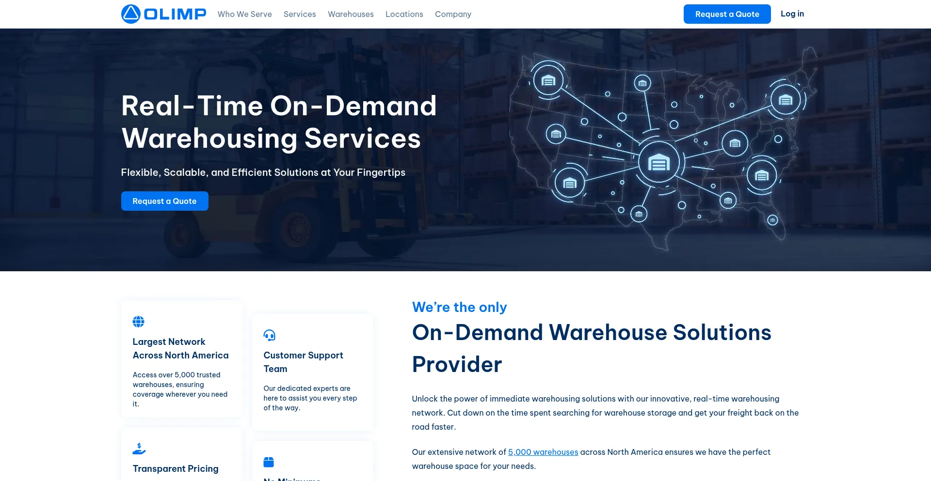 Flexible nationwide warehousing solutions by OLIMP - storage, fulfillment, cross-docking, transloading & drayage for efficient logistics. (158 chars)