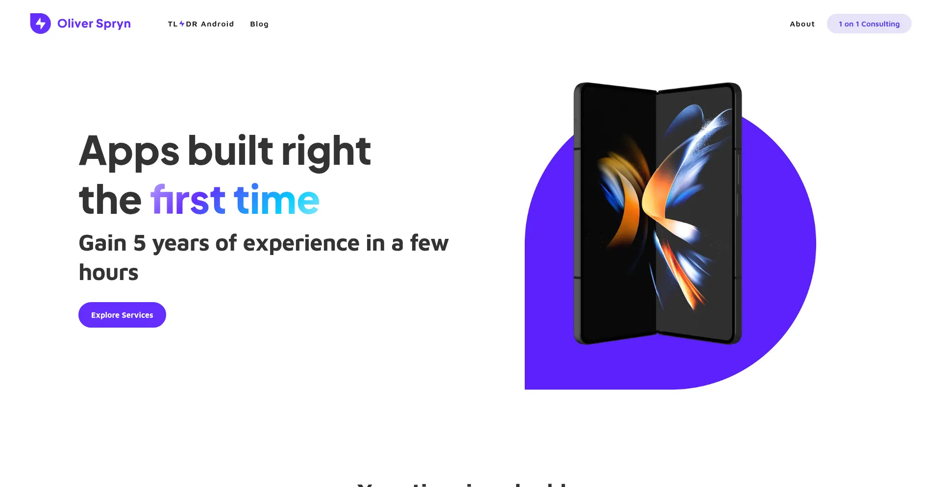 Expert, 1 on 1, Android consulting to give you a 5-year head start in a few hours. Get started with 15 minutes, free of charge.
