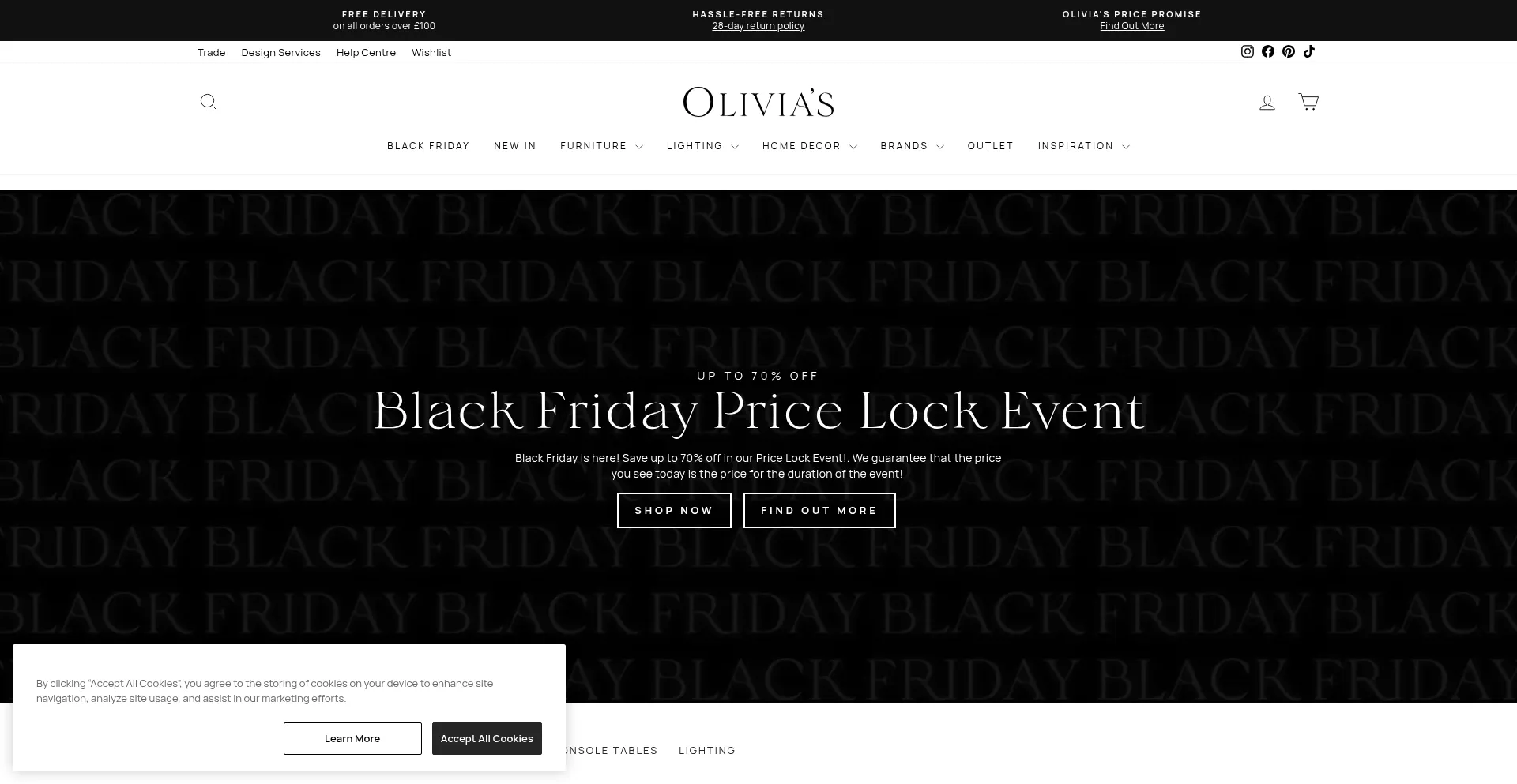 Luxury furniture and homeware straight to your door. Transform your house into a home with designer furniture and luxury home decor from Olivia's.