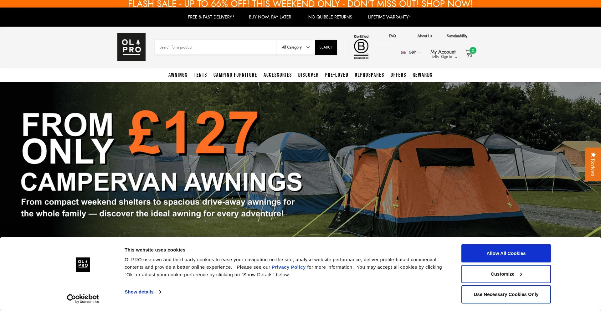 OLPRO creates stand out gear for adventurers! B Corp certified & Voted 2024's best campervan awning brand! For quality products that won't ruin the earth shop OLPRO!
