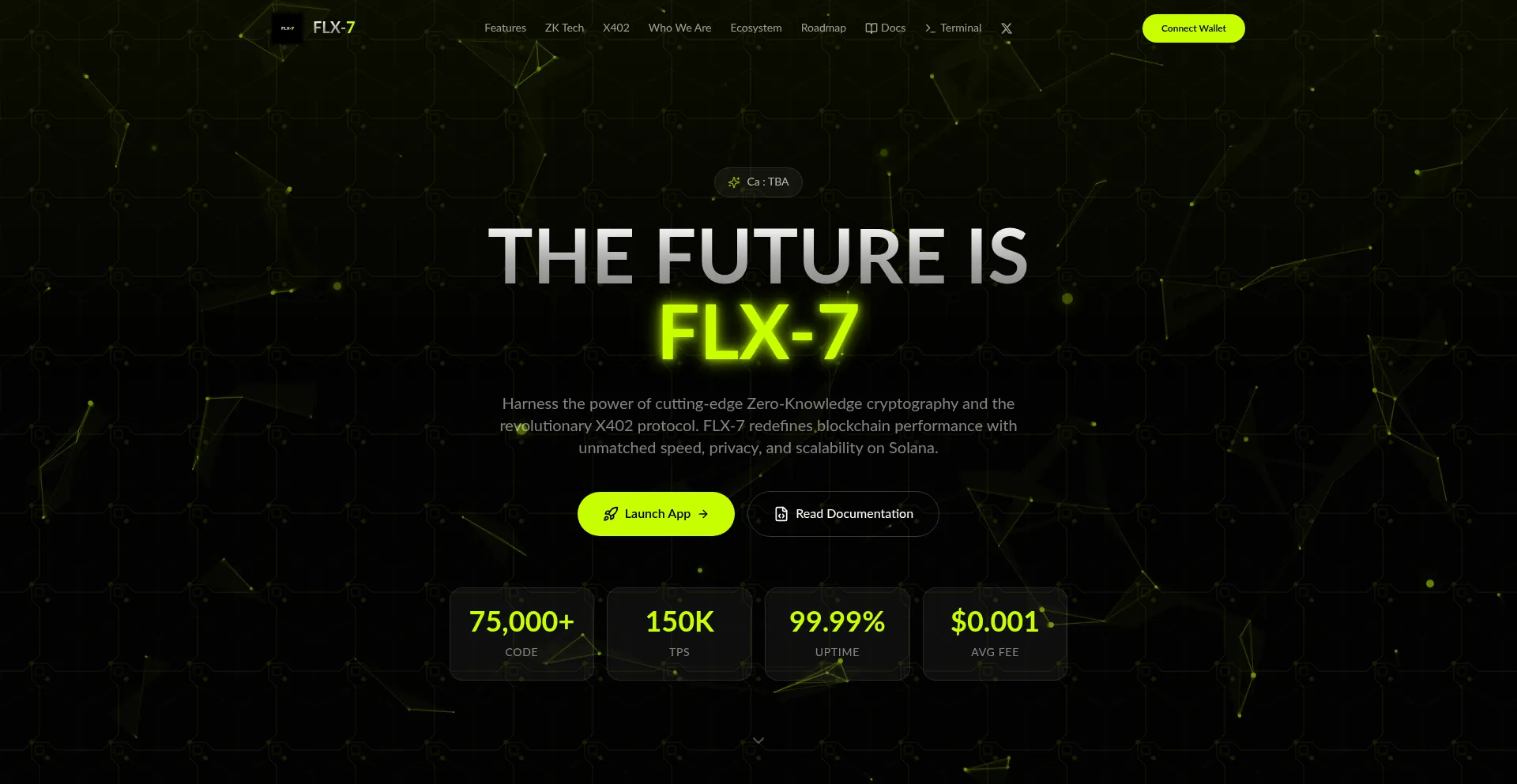 FLX-7 is a cutting-edge decentralized protocol leveraging ZK technology and X402 innovation on Solana. Experience the future of blockchain.