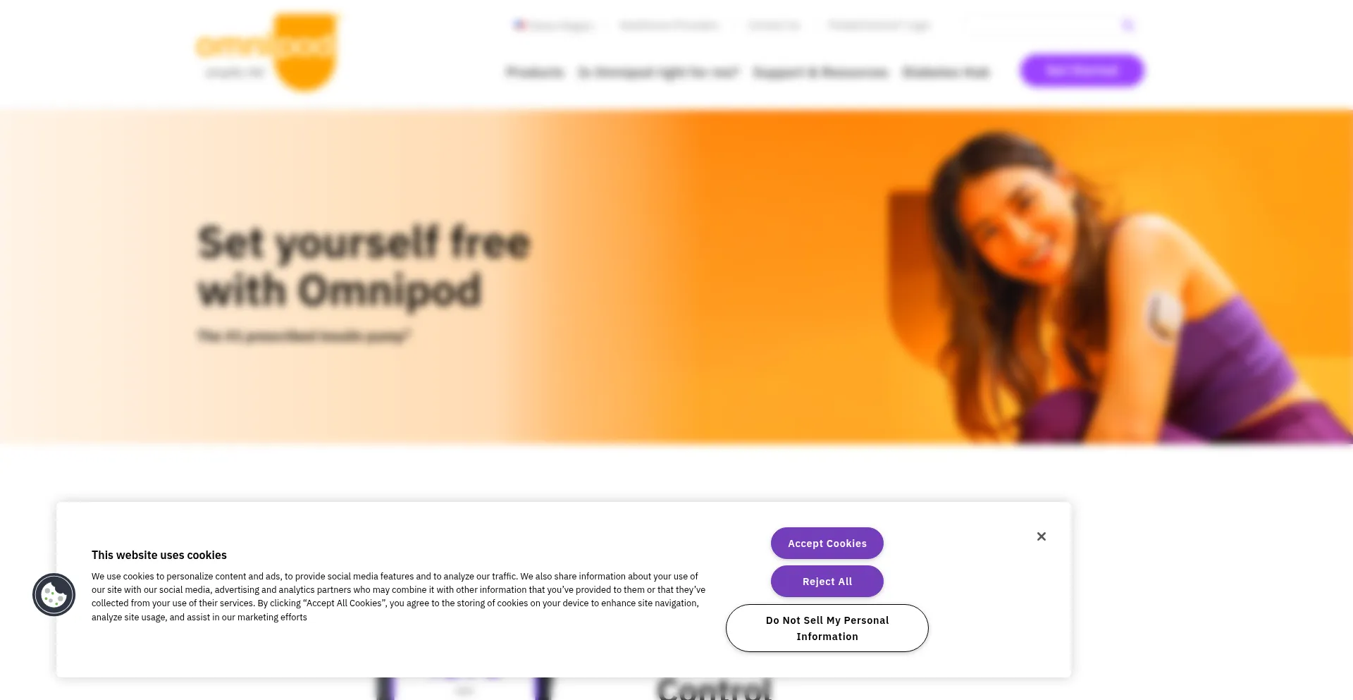 The website implements cookie consent mechanisms in compliance with privacy regulations such as GDPR or CCPA. This demonstrates that omnipod.com adheres to data protection standards and provides users with control over personal data collection practices.