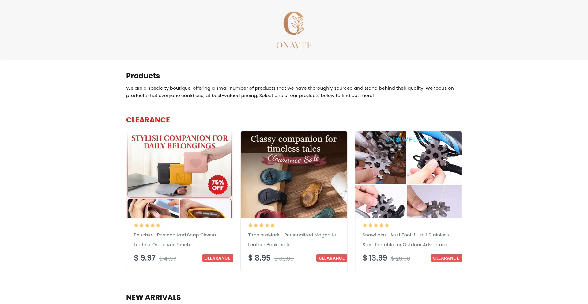 Analysis indicates that onavee.us operates as an e-commerce platform facilitating online transactions for goods or services. The website implements shopping cart functionality, payment processing systems, and product catalog features typical of commercial retail operations.