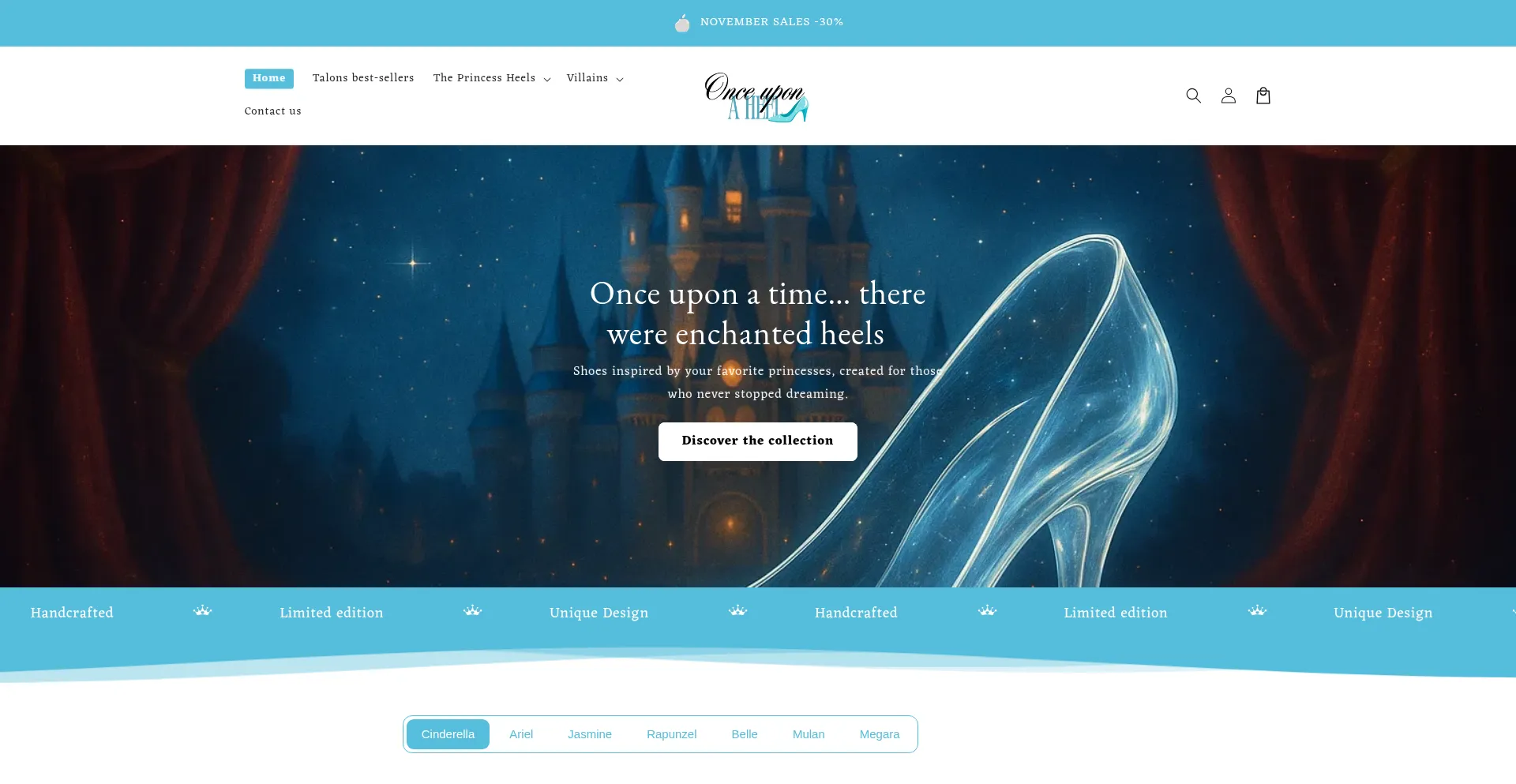 The most beautiful pairs of Heels inspired by your favorite princesses and villains ! Bring the magic of fairy tales to your feet!