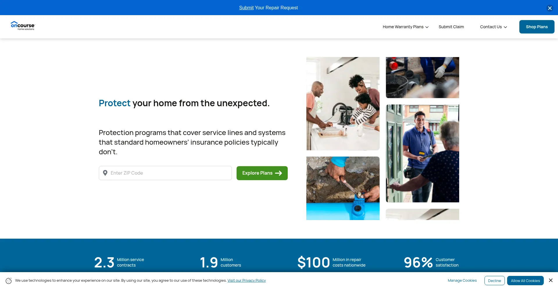 Oncourse Home Solutions offers affordable home protection programs that help protect against unexpected repair costs for service line emergencies, including water and sewer lines.