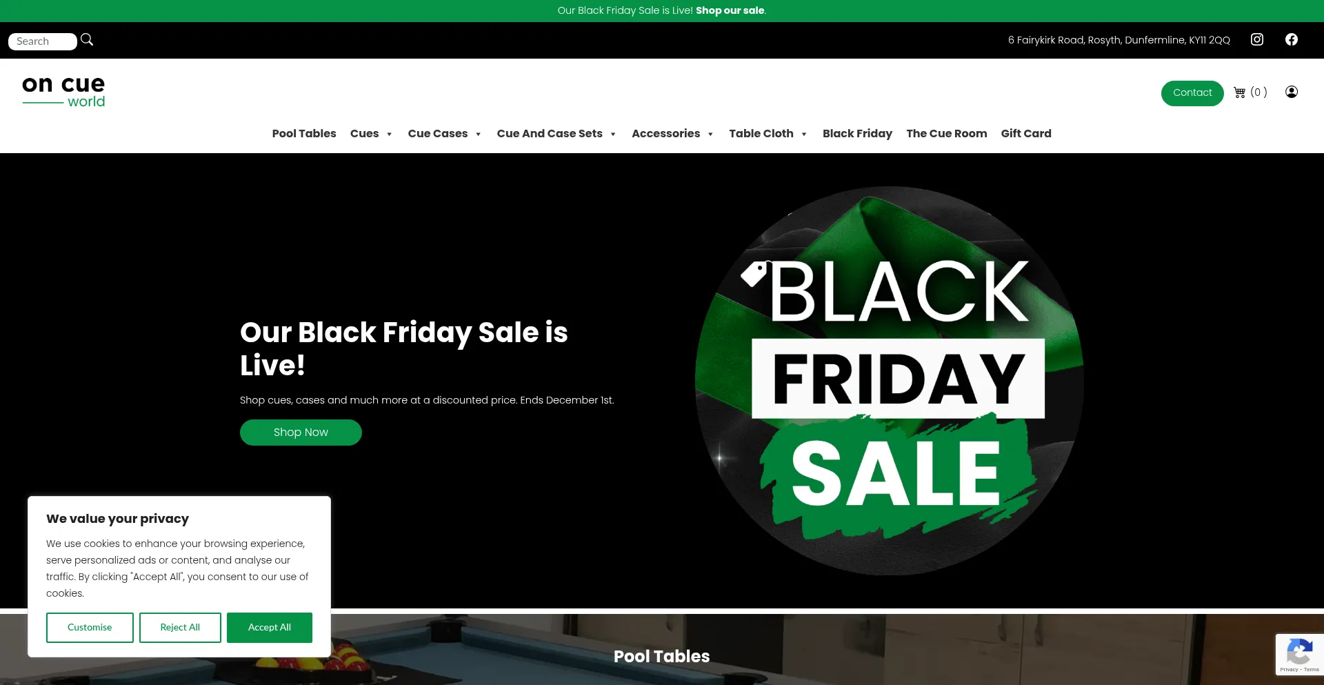 Shop On Cue World's Black Friday Sale! Save on cues, cases, accessories and leading brands trusted by all players. Black Friday offers end Dec 1st. Shop now.