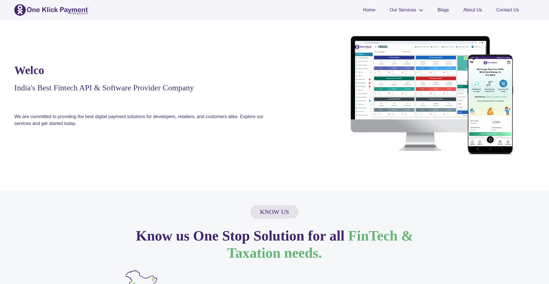 The oneklick.co.in website offers a mobile application for Android devices, indicating expanded platform presence beyond web-based services.