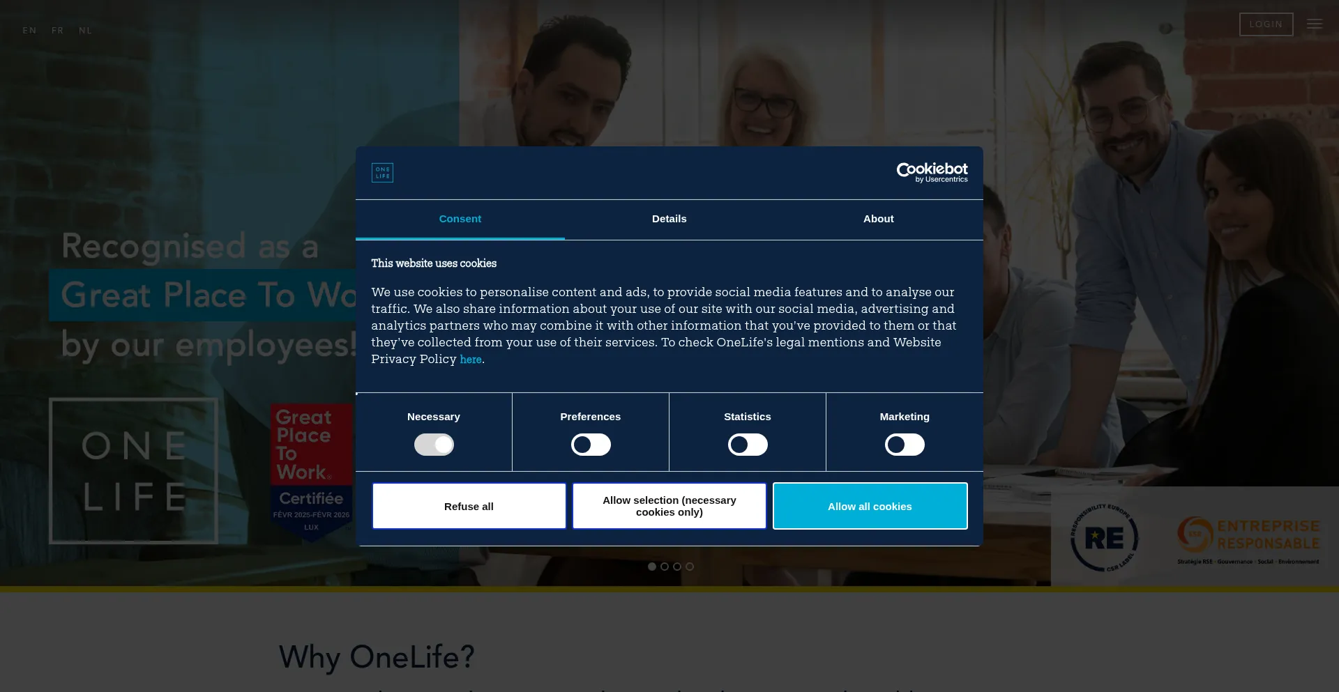 The website implements cookie consent mechanisms in compliance with privacy regulations such as GDPR or CCPA. This demonstrates that onelife.com adheres to data protection standards and provides users with control over personal data collection practices.