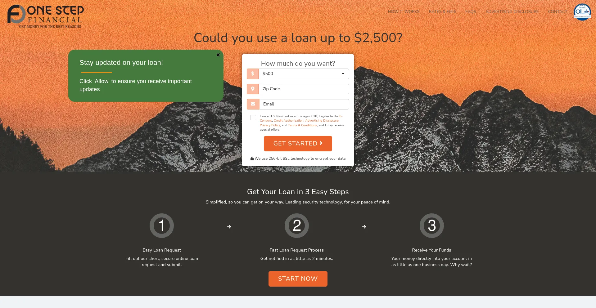 onestepfinancial.net trc.pushnami.com fonts.googleapis.com onlinelendersalliance.org api.pushnami.com fonts.gstatic.com www.googletagmanager.com res.cloudinary.com api.trustedform.com cdn.pushnami.com +4 more