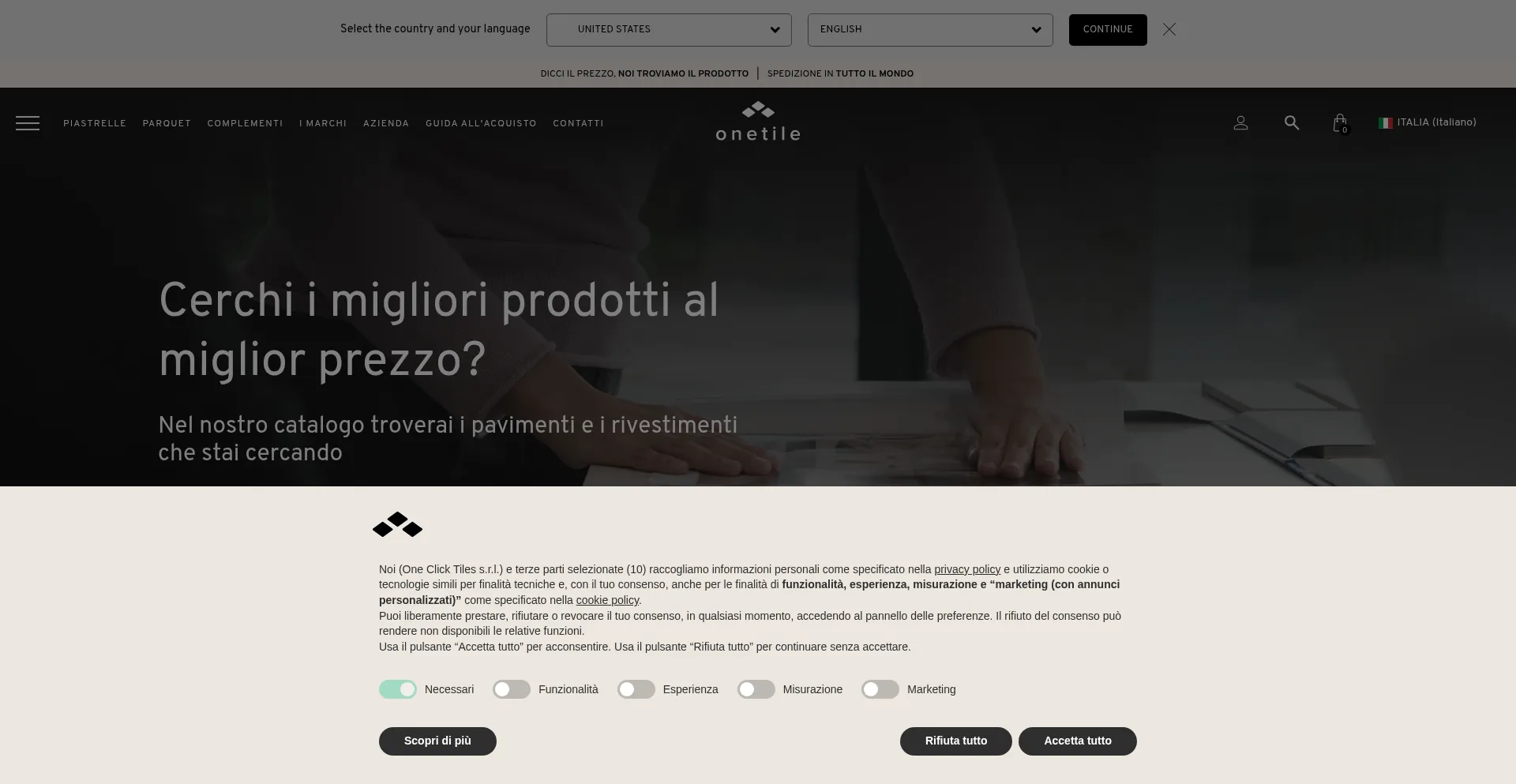 The website implements cookie consent mechanisms in compliance with privacy regulations such as GDPR or CCPA. This demonstrates that onetile.it adheres to data protection standards and provides users with control over personal data collection practices.