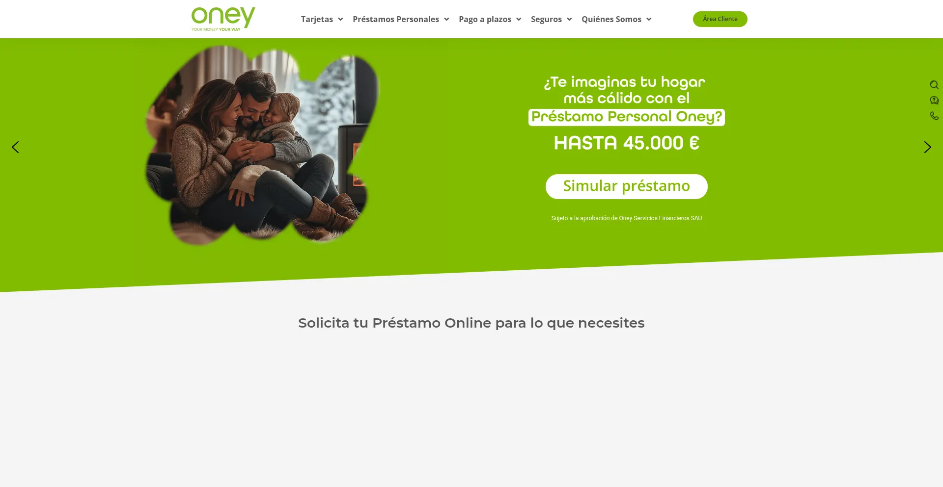 Oney, servicios financieros especialistas en soluciones de pago: préstamos personales, tarjetas de crédito, pago a plazos y seguros.