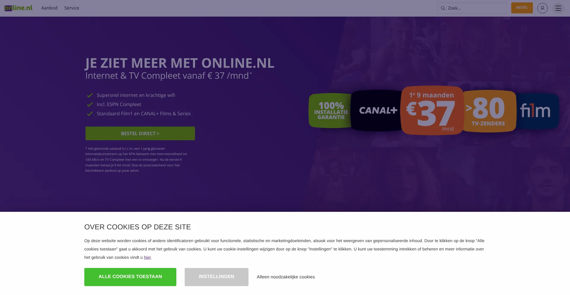 The website implements cookie consent mechanisms in compliance with privacy regulations such as GDPR or CCPA. This demonstrates that online.nl adheres to data protection standards and provides users with control over personal data collection practices.