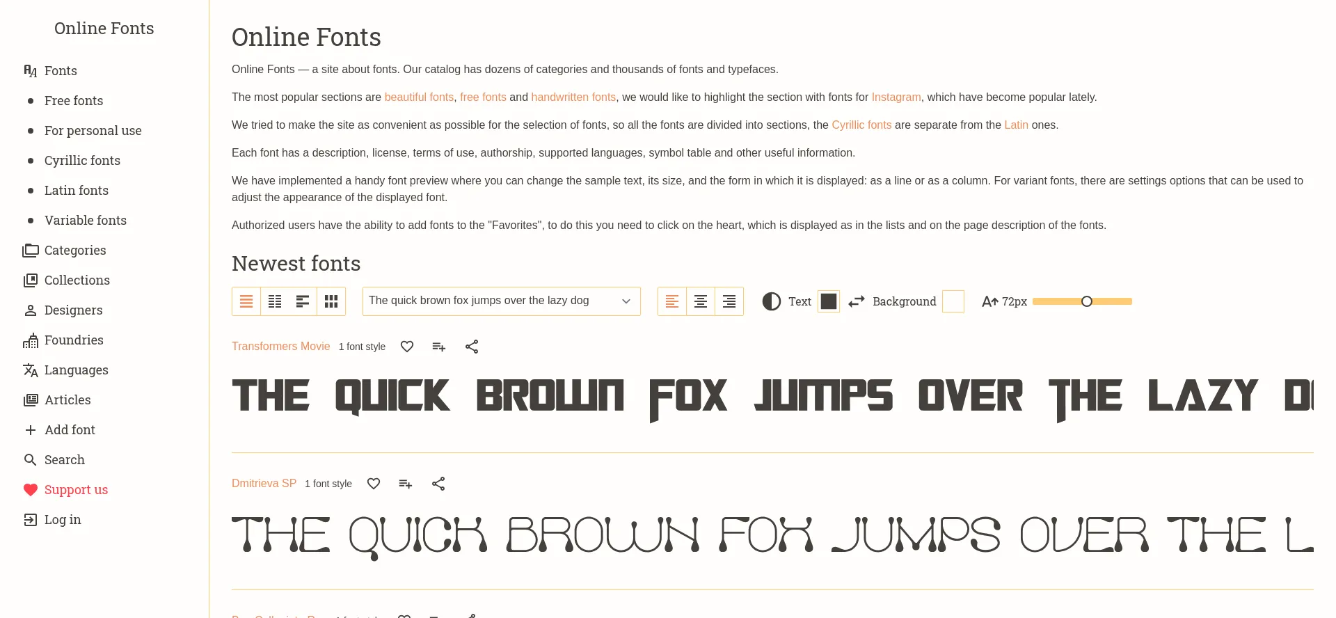 A site about fonts. Our catalog has dozens of categories and thousands of fonts and typefaces. A handy preview of fonts.