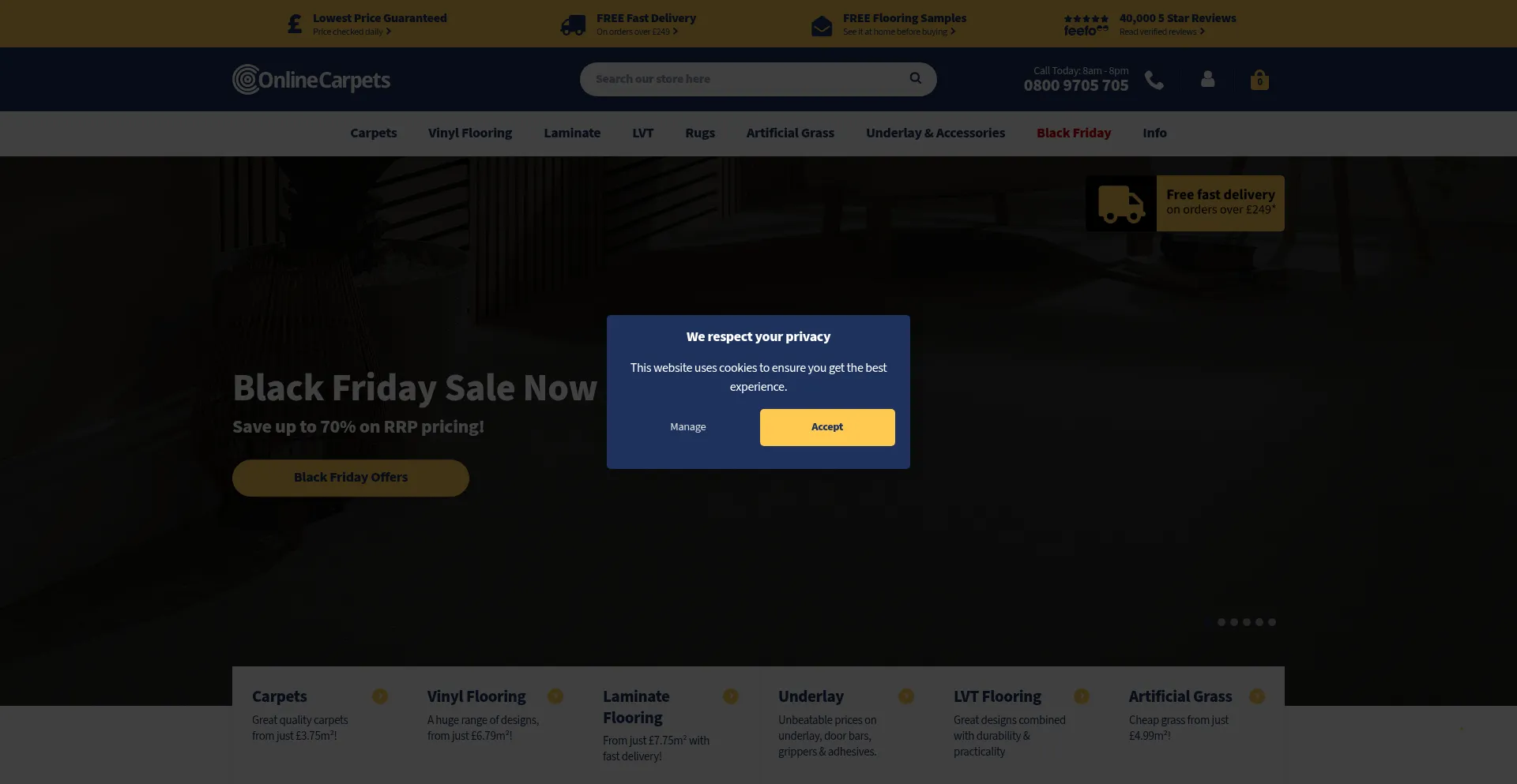 The website implements cookie consent mechanisms in compliance with privacy regulations such as GDPR or CCPA. This demonstrates that onlinecarpets.co.uk adheres to data protection standards and provides users with control over personal data collection practices.