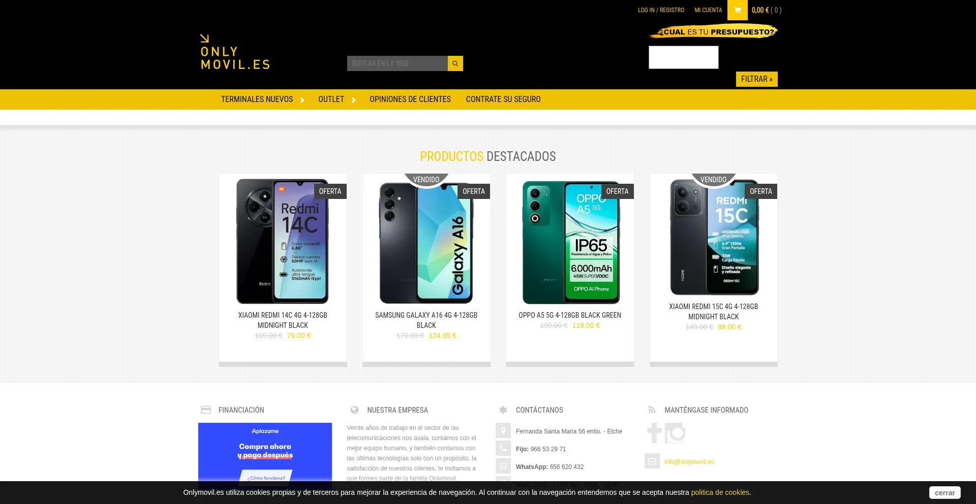 Analysis indicates that onlymovil.es operates as an e-commerce platform facilitating online transactions for goods or services. The website implements shopping cart functionality, payment processing systems, and product catalog features typical of commercial retail operations.
