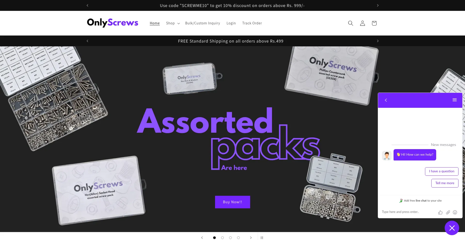 Analysis indicates that onlyscrews.in operates as an e-commerce platform facilitating online transactions for goods or services. The website implements shopping cart functionality, payment processing systems, and product catalog features typical of commercial retail operations.