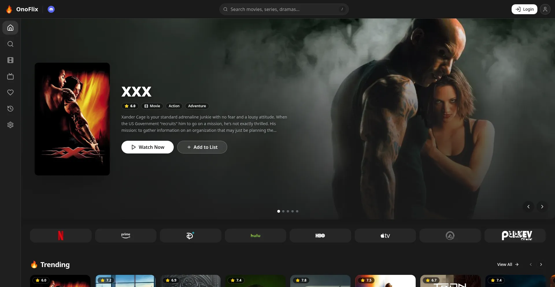 OnoFlix is your destination for watching movies & series online. Discover, track, and stream from a vast library in high quality.