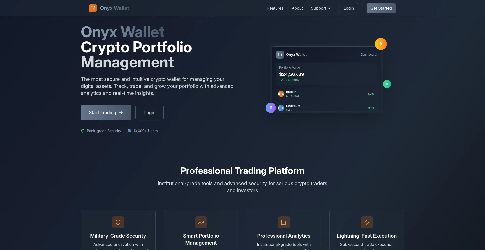 Modern crypto wallet portfolio management platform with secure trading and real-time analytics.