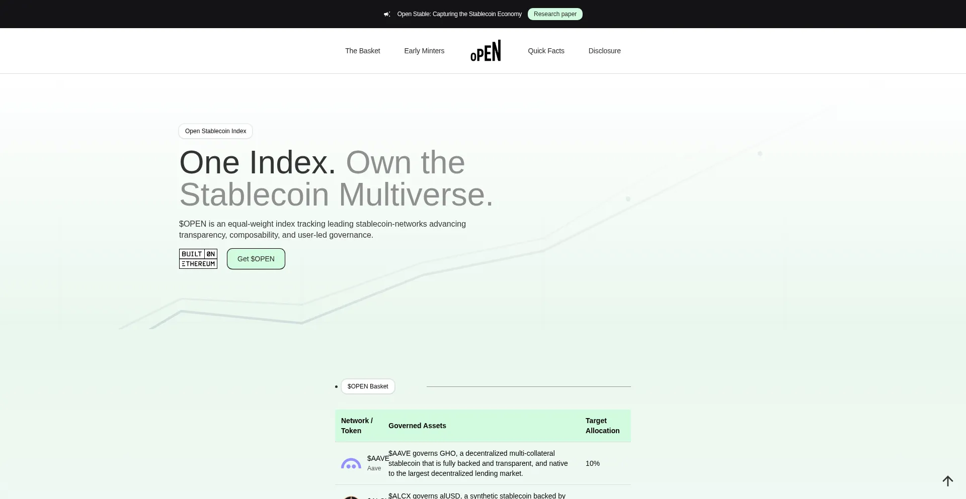 $OPEN is an equal-weight index tracking leading stablecoin-networks driven by the principles of transparency and decentralization.