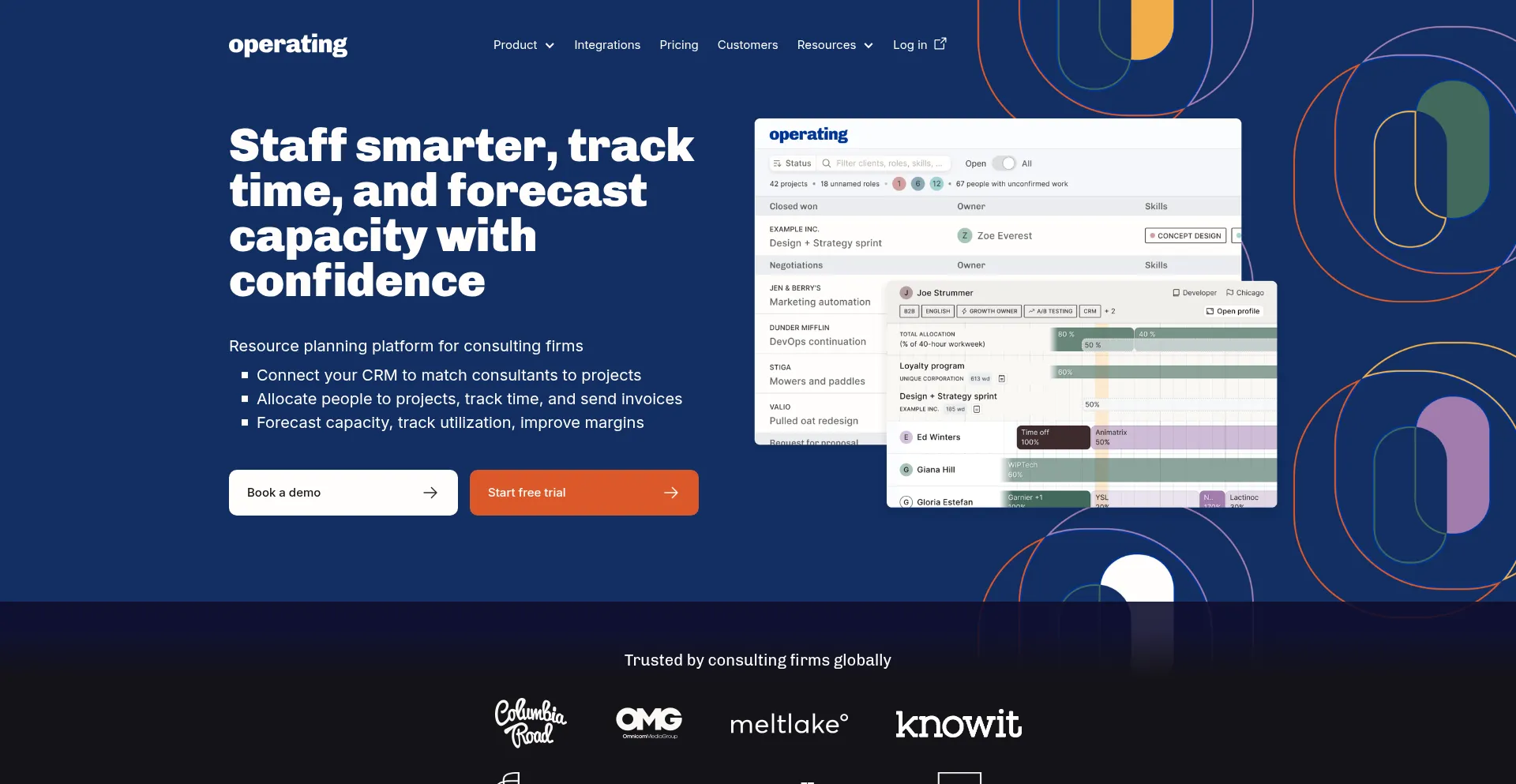 Operating is a SaaS platform for resource management, skills-based project staffing, and time tracking for consulting companies and professional services teams.