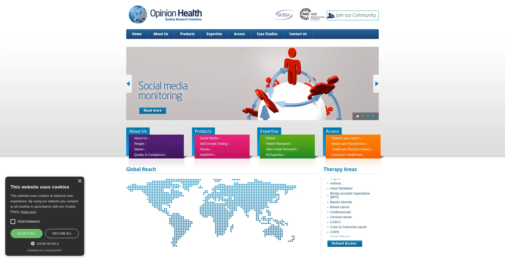 The website implements cookie consent mechanisms in compliance with privacy regulations such as GDPR or CCPA. This demonstrates that opinionhealth.com adheres to data protection standards and provides users with control over personal data collection practices.