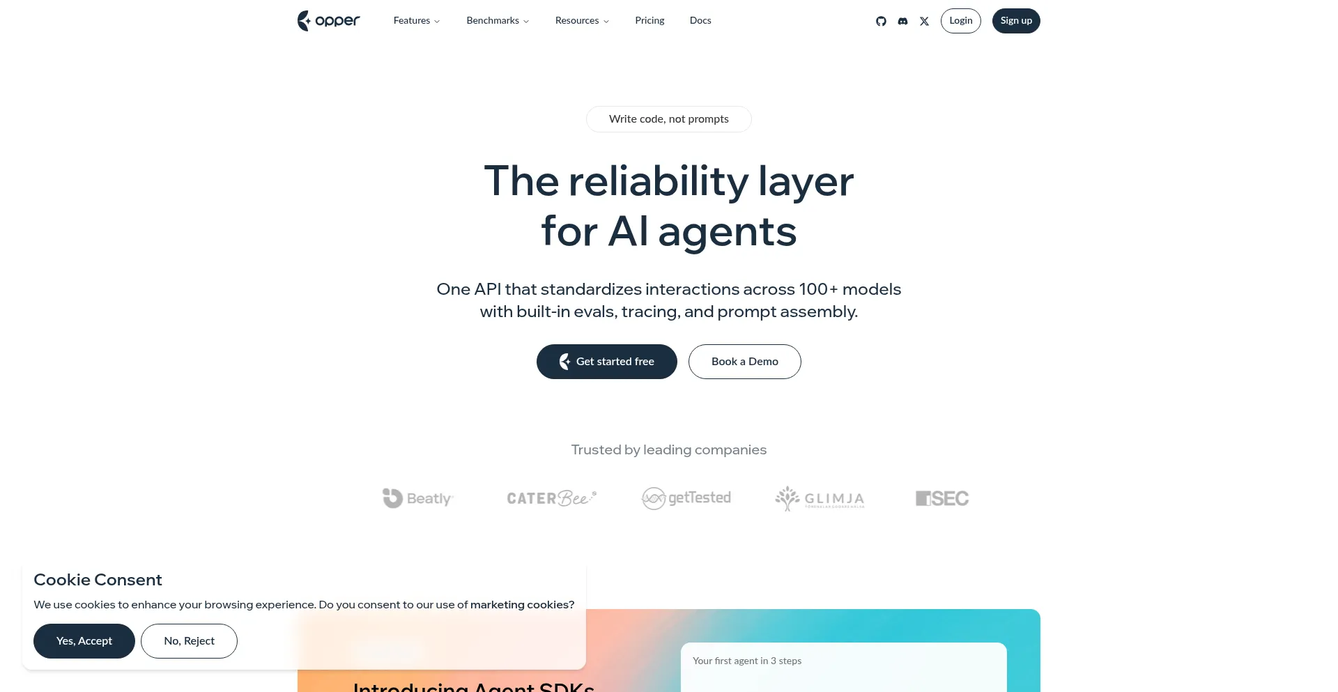 The website implements cookie consent mechanisms in compliance with privacy regulations such as GDPR or CCPA. This demonstrates that opper.ai adheres to data protection standards and provides users with control over personal data collection practices.
