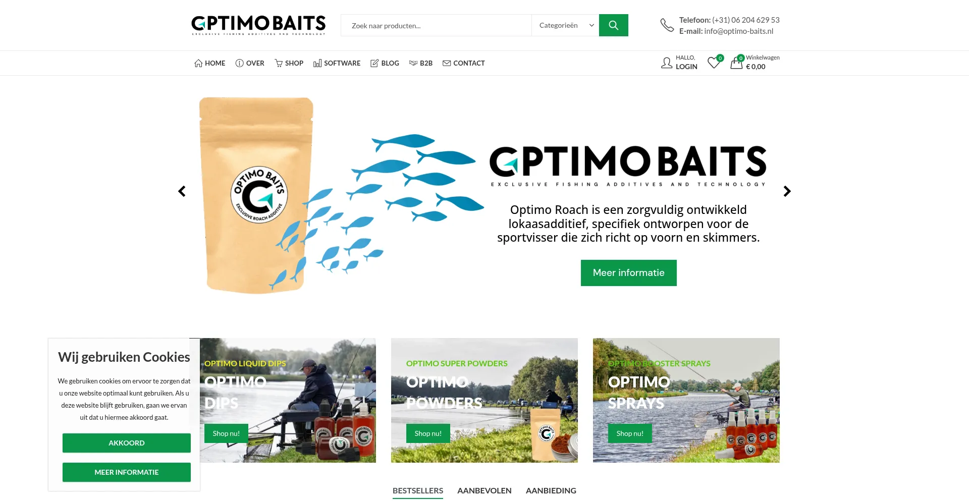 optimo-baits.nl uses Bootstrap, a widely-adopted open-source framework for responsive web development. Bootstrap enables efficient creation of mobile-friendly interfaces through standardized components and styling.