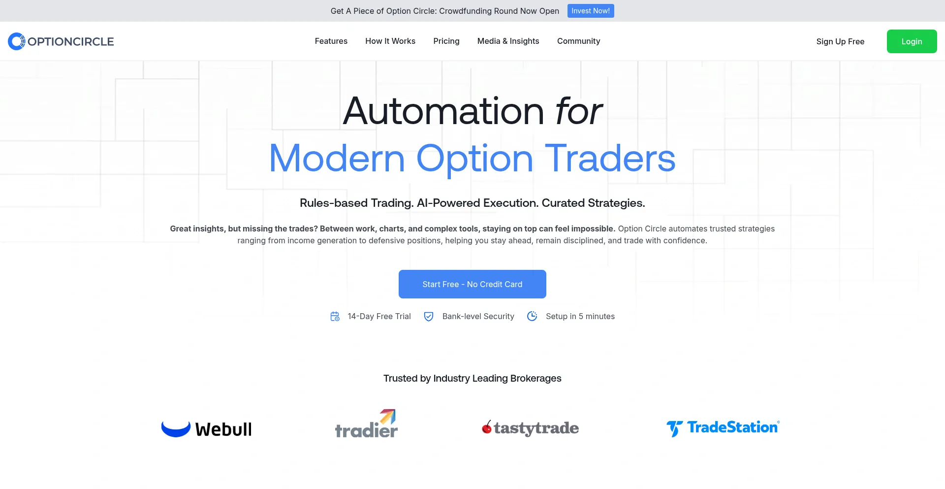 Harness AI-driven trading strategies with Option Circle. Automate investments, optimize risk management, and access a seamless brokerage dashboard for smarter trading decisions.