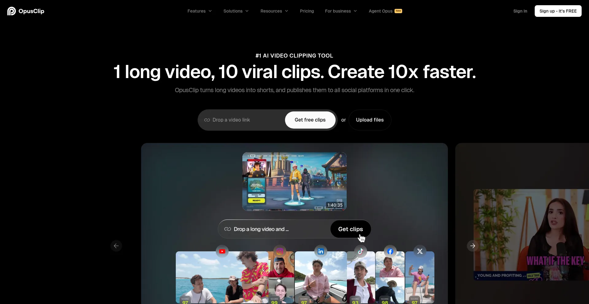 OpusClip turns long videos into high-quality viral clips, and publishes them to all social platforms in one click. We help 10M+ creators create and grow faster.
