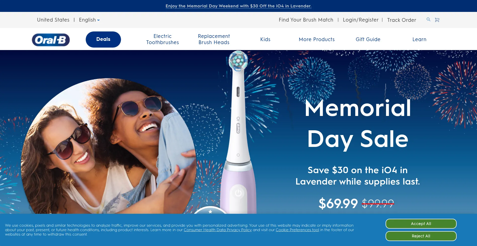 The oralb.com website uses Google Tag Manager to add and update tracking tags on its website.