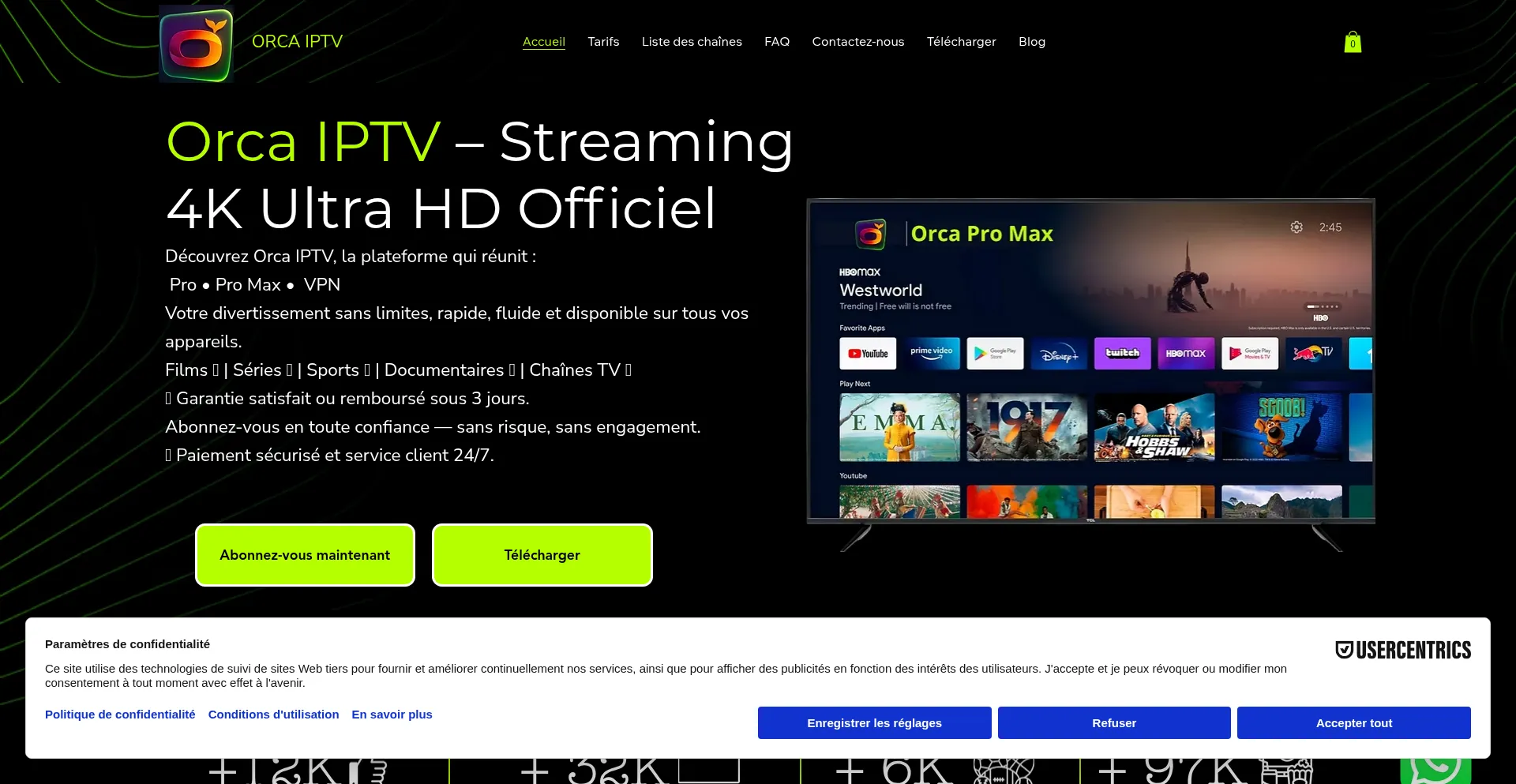 Orca IPTV 2025 – Streaming 4K Ultra HD Officiel