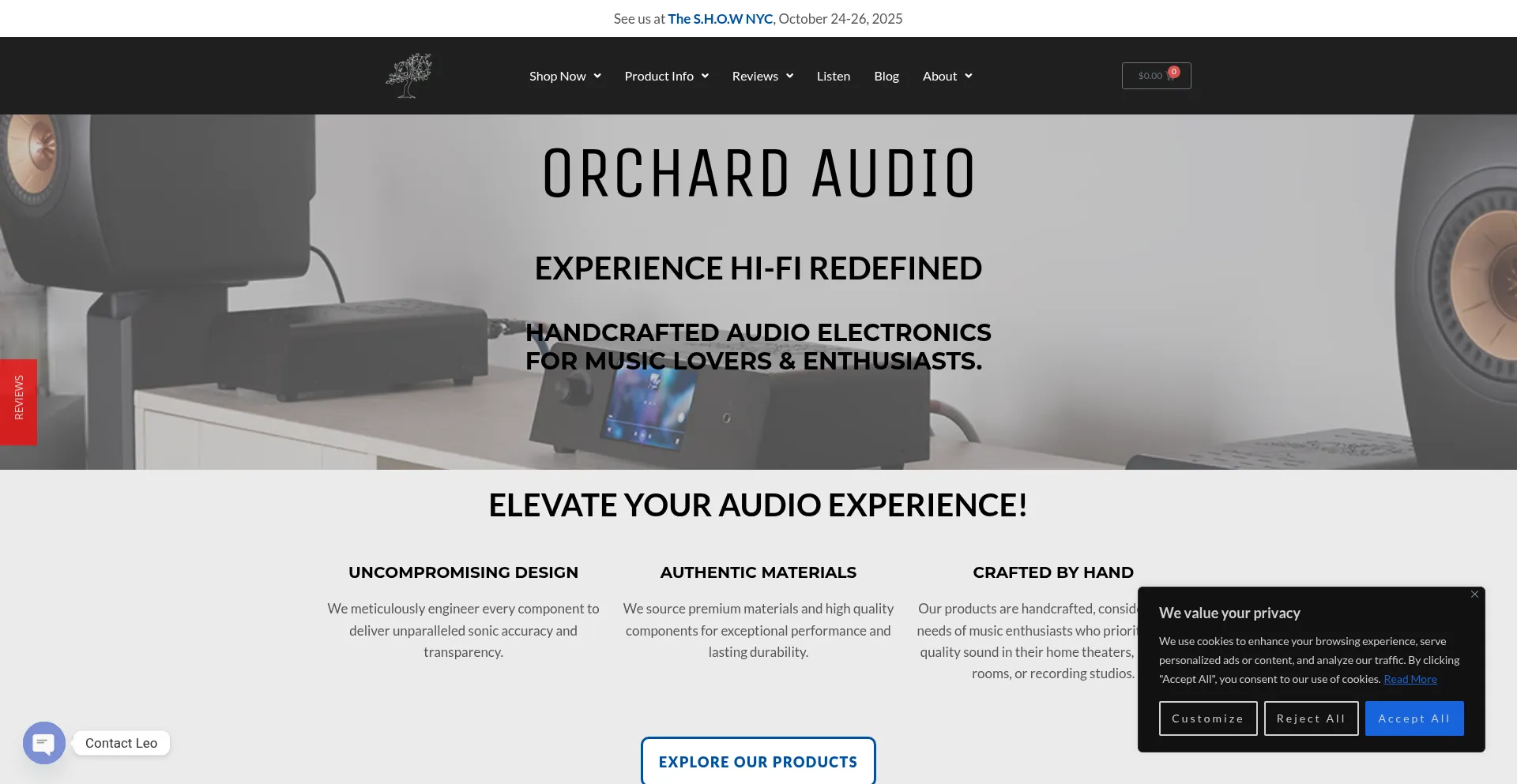 The website implements cookie consent mechanisms in compliance with privacy regulations such as GDPR or CCPA. This demonstrates that orchardaudio.com adheres to data protection standards and provides users with control over personal data collection practices.