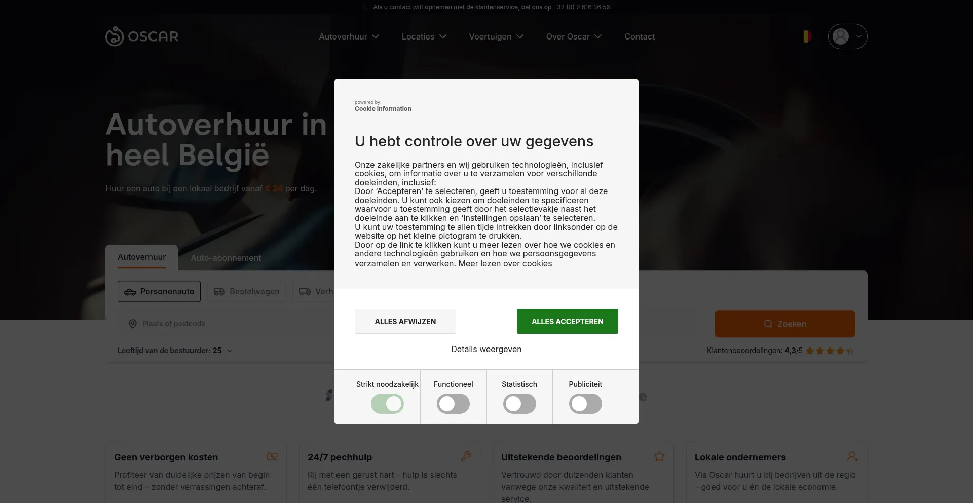 Bij Oscar Autoverhuur bieden wij voordelige en eenvoudige autohuur aan, altijd bij u in de buurt op meer dan 82 locaties in België. Boek gemakkelijk online.
