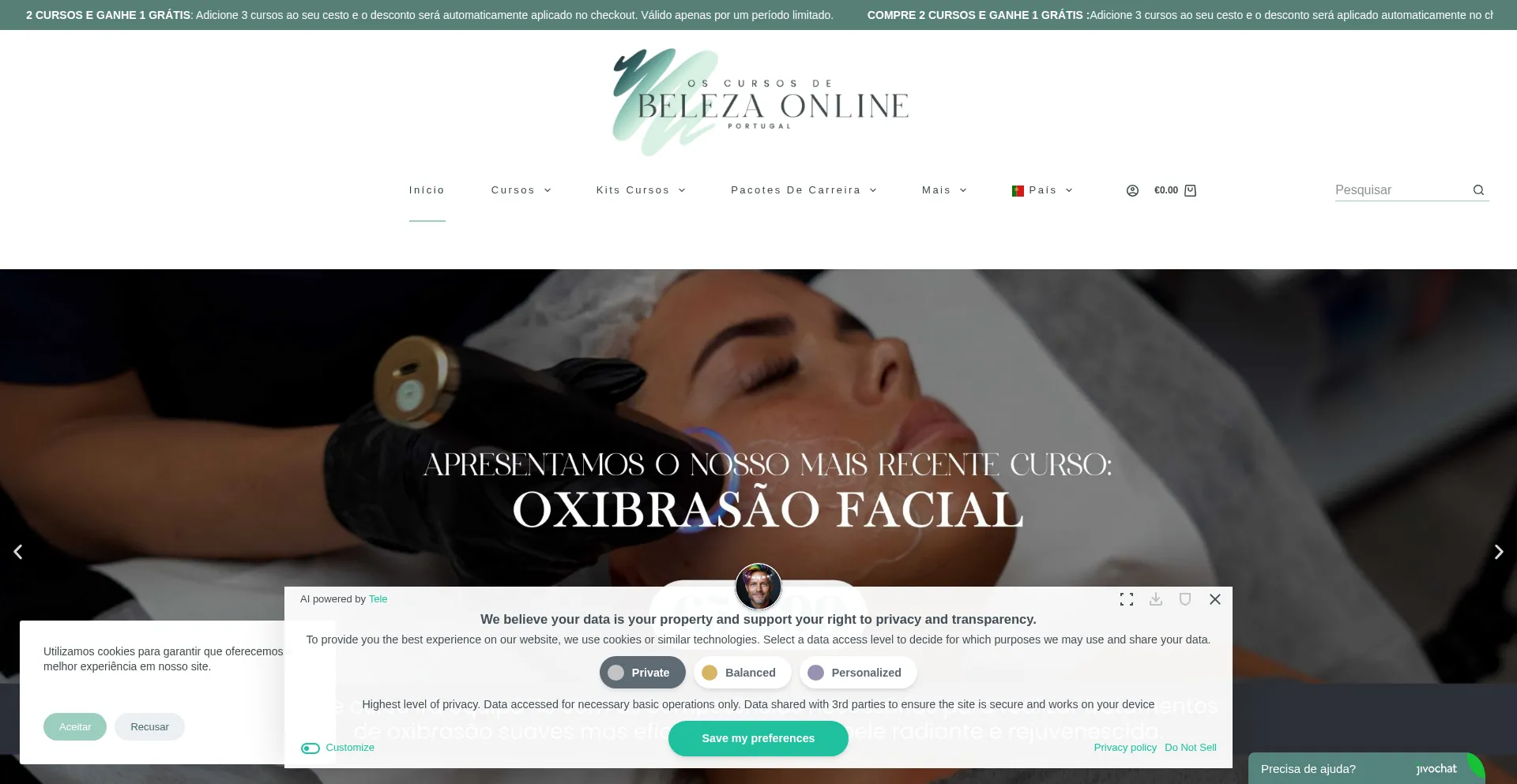 The website implements cookie consent mechanisms in compliance with privacy regulations such as GDPR or CCPA. This demonstrates that oscursosdebelezaonline.pt adheres to data protection standards and provides users with control over personal data collection practices.