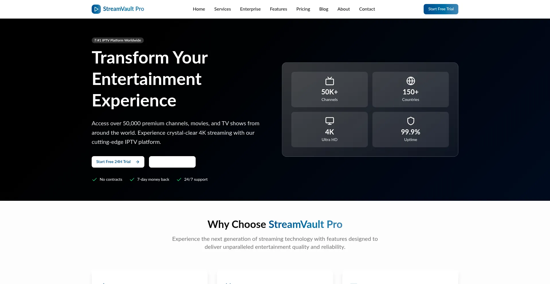 StreamVault Pro | Premium IPTV Service | Best Streaming Experience