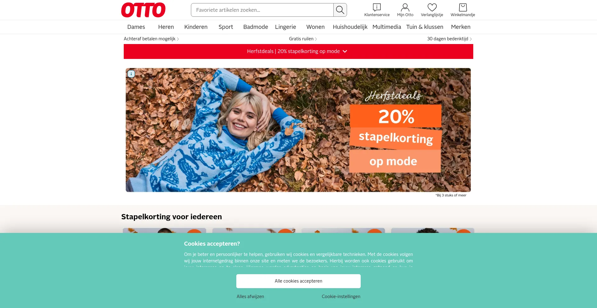 The website implements cookie consent mechanisms in compliance with privacy regulations such as GDPR or CCPA. This demonstrates that otto.nl adheres to data protection standards and provides users with control over personal data collection practices.