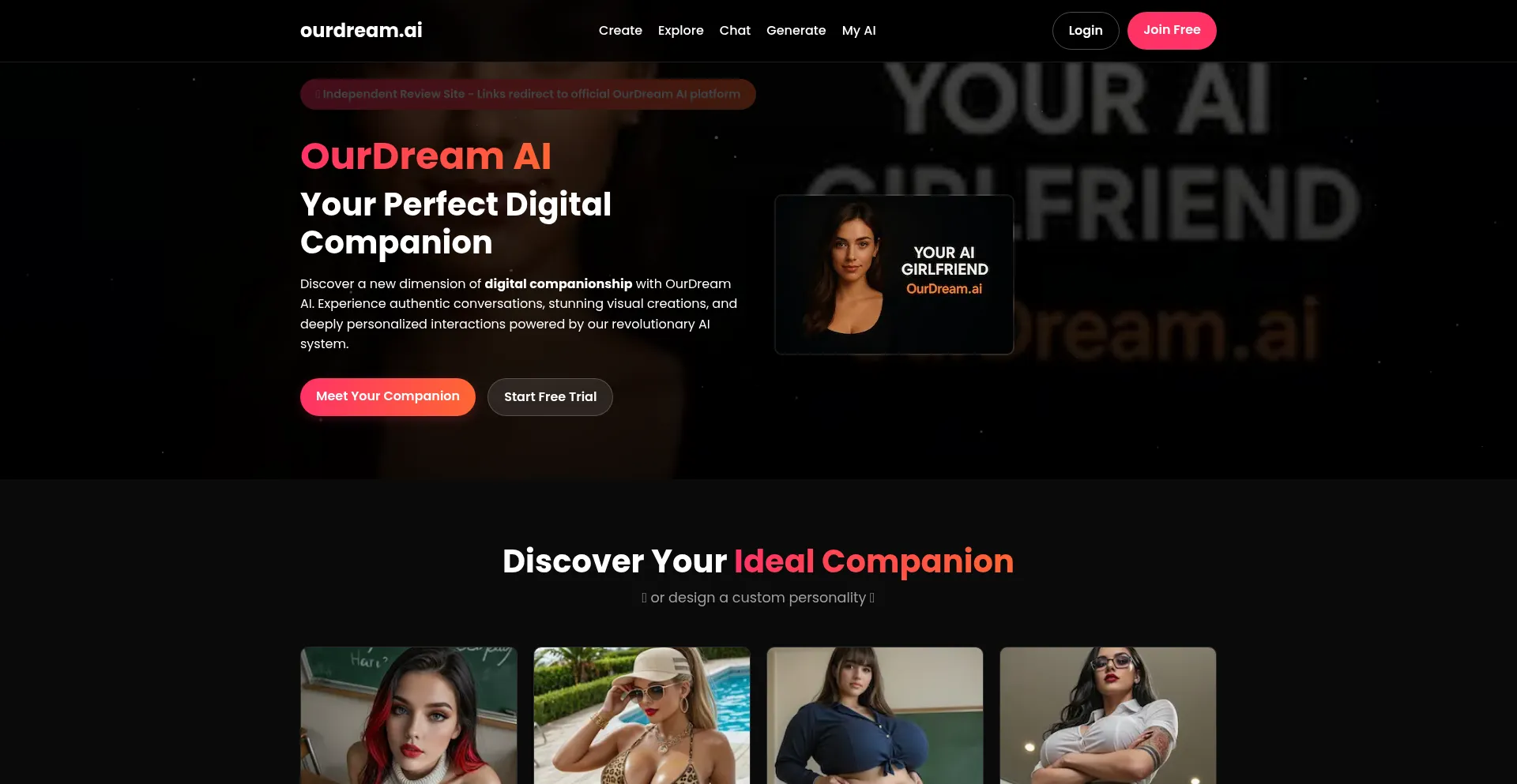 Experience AI companionship with OurDream AI. Create your perfect digital companion with lifelike conversations and stunning visuals. Join thousands discovering personalized AI ...