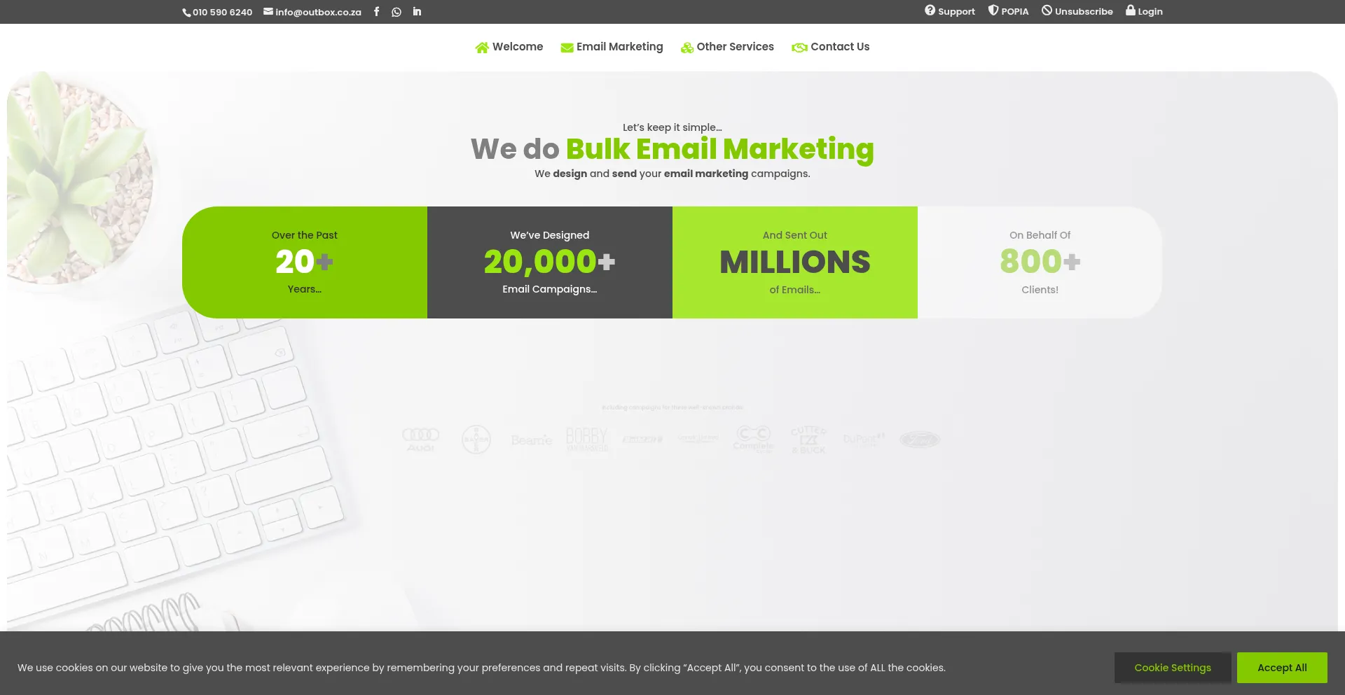 The website implements cookie consent mechanisms in compliance with privacy regulations such as GDPR or CCPA. This demonstrates that outbox.co.za adheres to data protection standards and provides users with control over personal data collection practices.