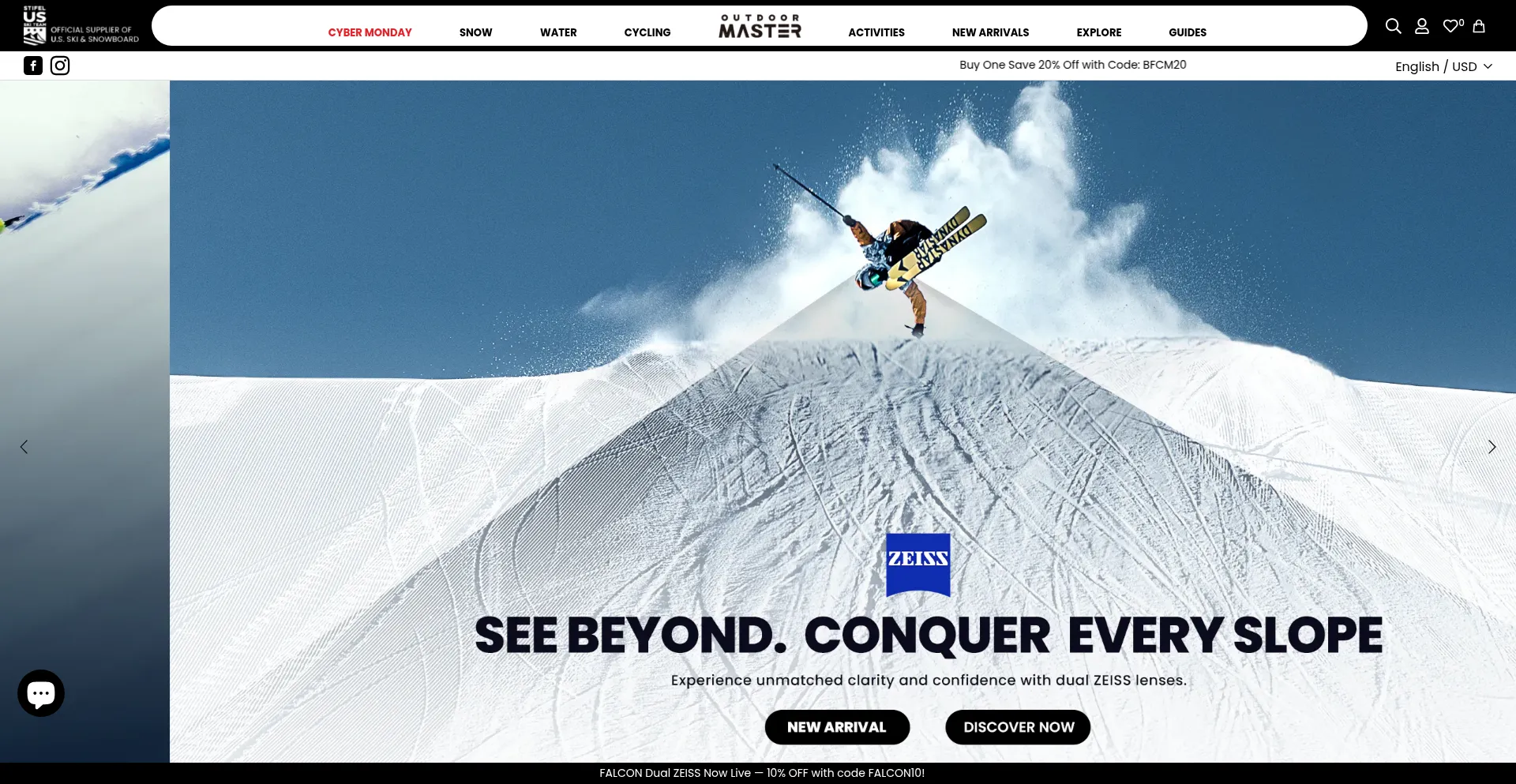Analysis indicates that outdoormaster.com operates as an e-commerce platform facilitating online transactions for goods or services. The website implements shopping cart functionality, payment processing systems, and product catalog features typical of commercial retail operations.