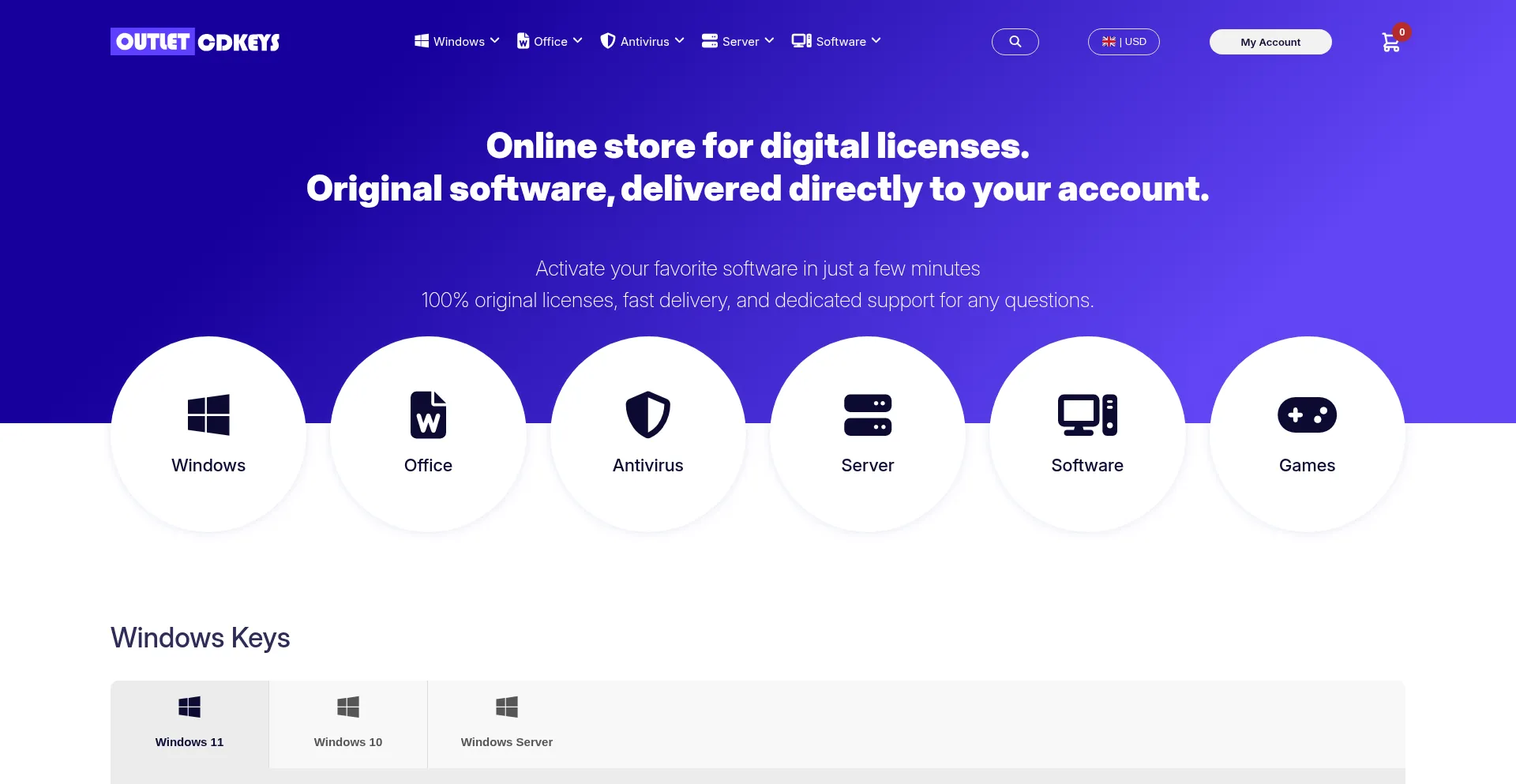 Analysis indicates that outletcdkeys.com operates as an e-commerce platform facilitating online transactions for goods or services. The website implements shopping cart functionality, payment processing systems, and product catalog features typical of commercial retail operations.