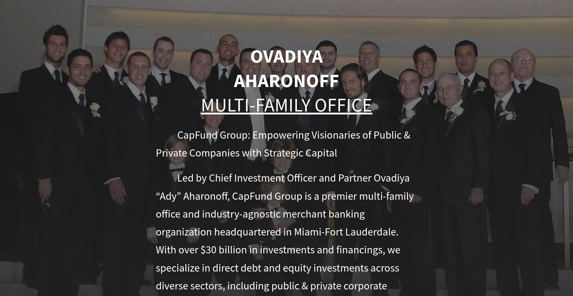 CapFund Group, led by Ovadiya “Ady” Aharonoff, Chief Investment Officer and Partner, is a premier multi-family office specializing in direct debt and equity investments. Bas...