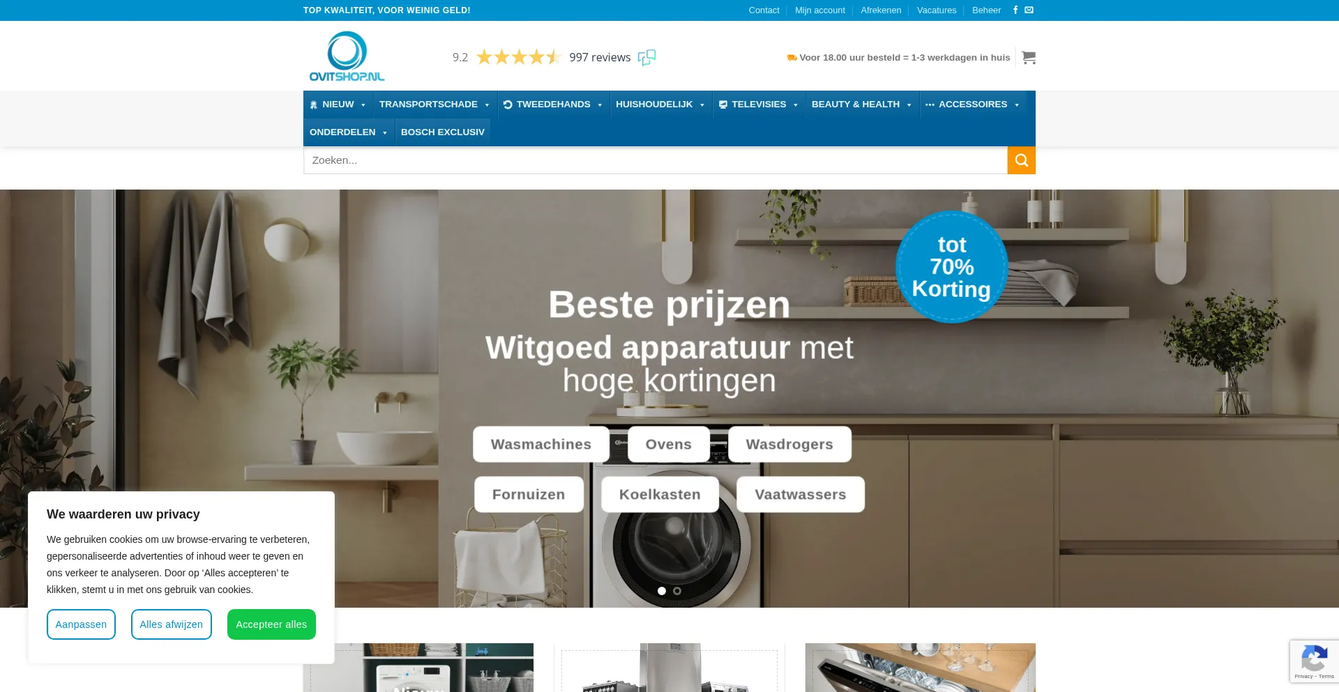 The website implements cookie consent mechanisms in compliance with privacy regulations such as GDPR or CCPA. This demonstrates that ovitshop.nl adheres to data protection standards and provides users with control over personal data collection practices.
