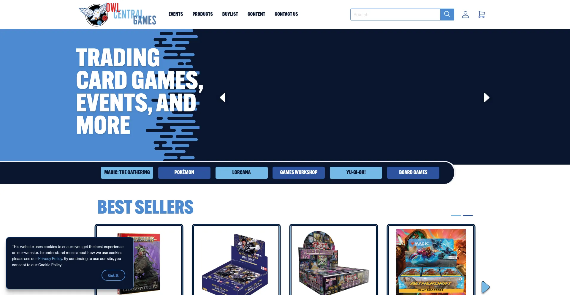 Owl Central Games is your home for everything Trading Card Games. Supporting Magic: the Gathering, Pokémon, Yu-Gi-Oh!, Lorcana and more!