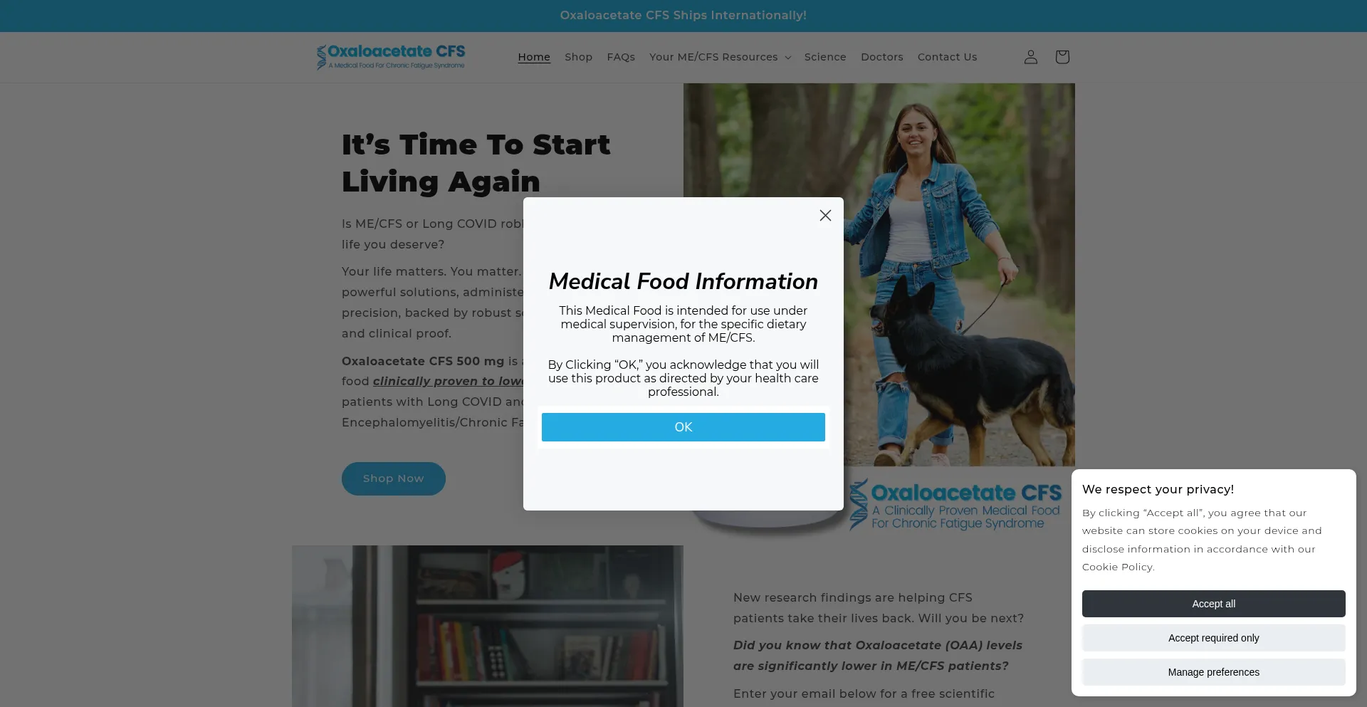 Our analyzer determines that website oxaloacetatecfs.com is using Shopify CMS. Shopify is a popular e-commerce platform, powering around 4.4% of websites globally.