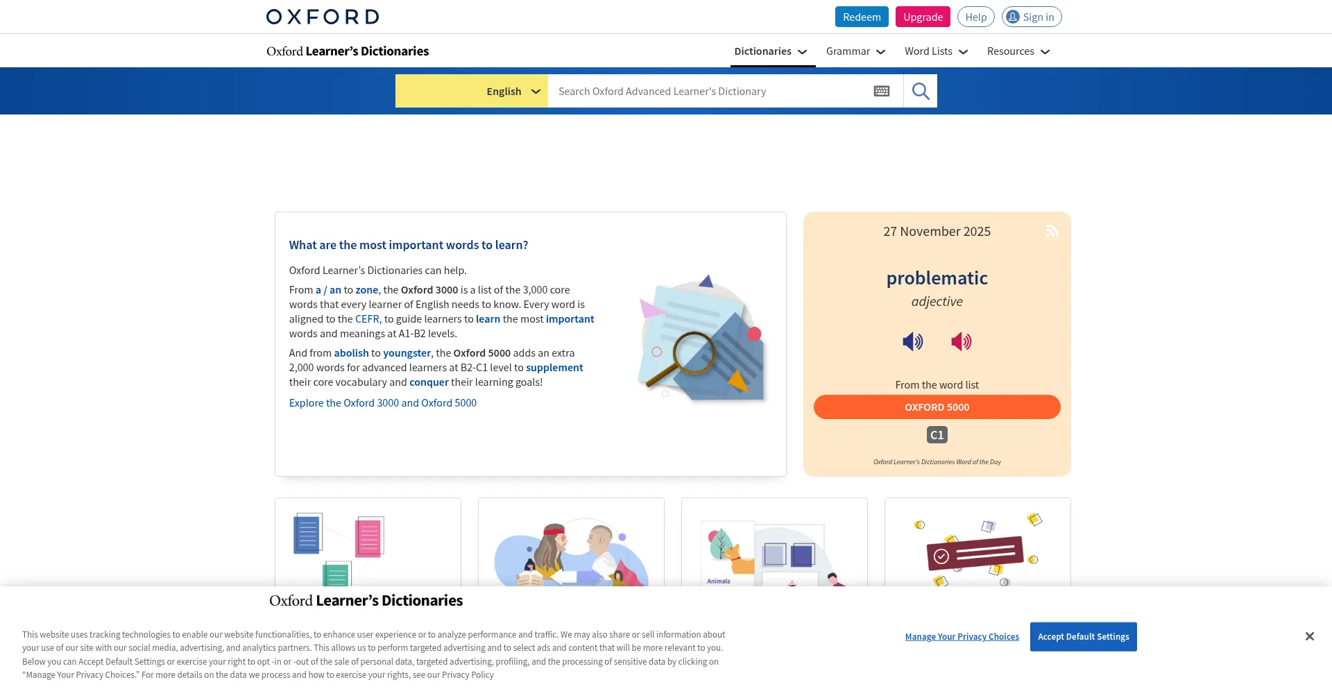 The website implements cookie consent mechanisms in compliance with privacy regulations such as GDPR or CCPA. This demonstrates that oxfordlearnersdictionaries.com adheres to data protection standards and provides users with control over personal data collection practices.