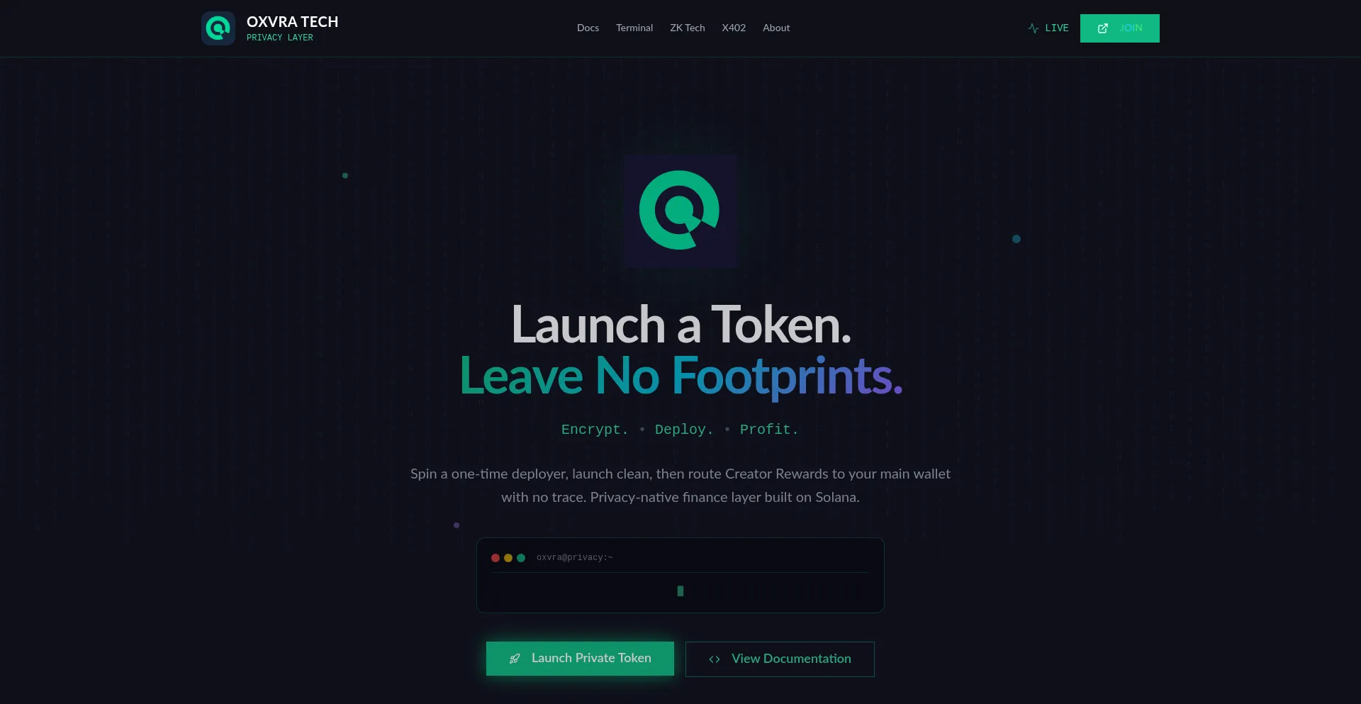 Oxvra Tech - Launch a Token. Leave No Footprints.