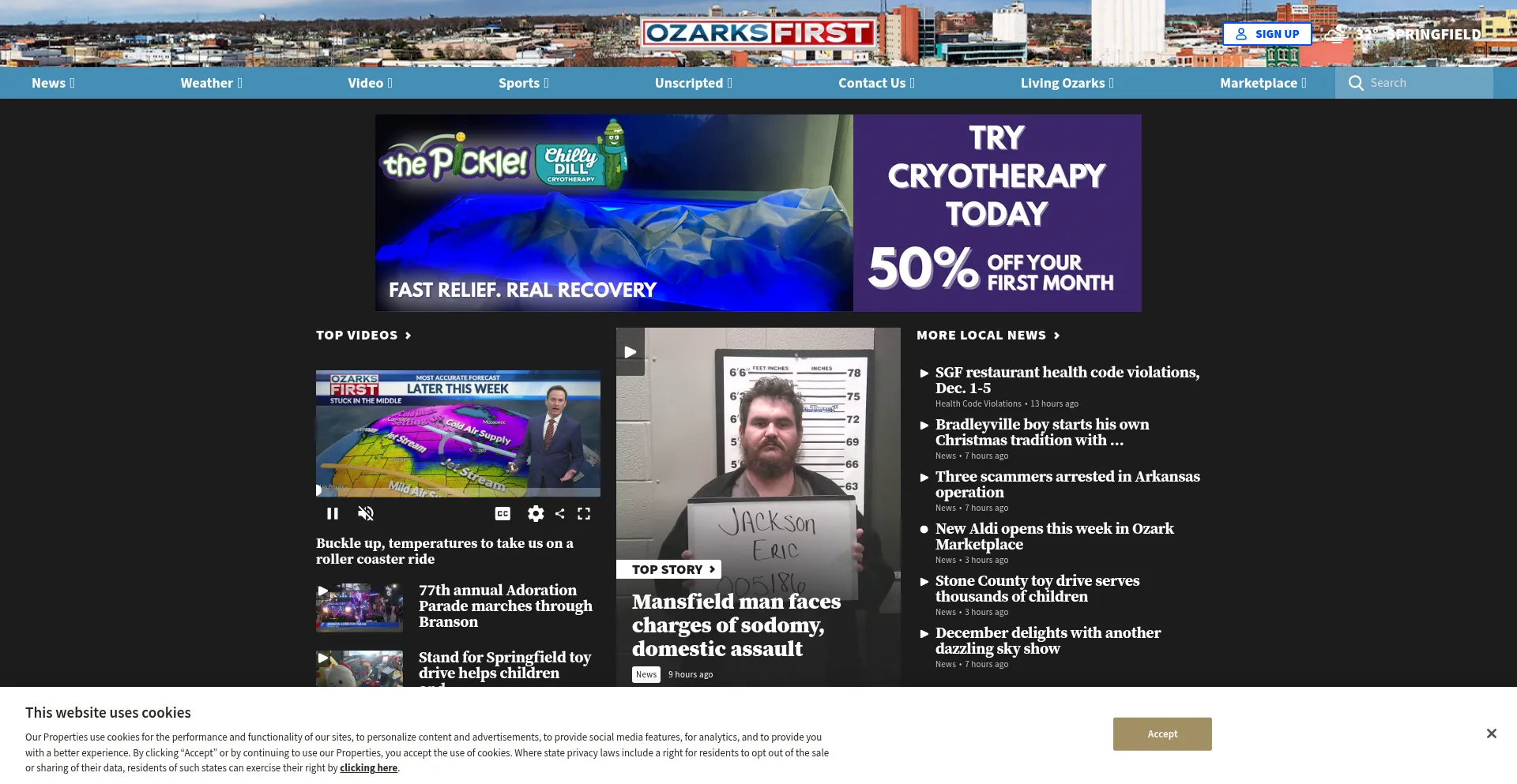 The website implements cookie consent mechanisms in compliance with privacy regulations such as GDPR or CCPA. This demonstrates that ozarksfirst.com adheres to data protection standards and provides users with control over personal data collection practices.