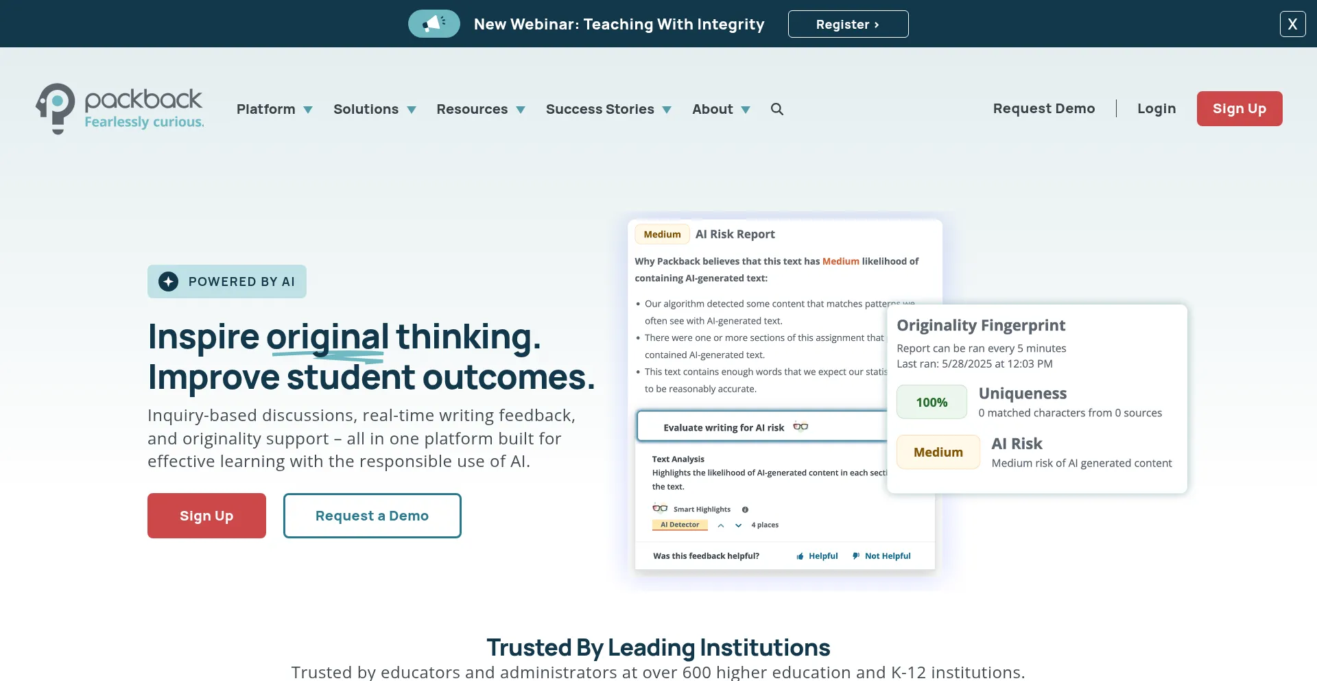 Packback: The AI-powered learning platform inspiring critical thinking & student engagement. Enhance discussions, writing & academic integrity. Learn more today!