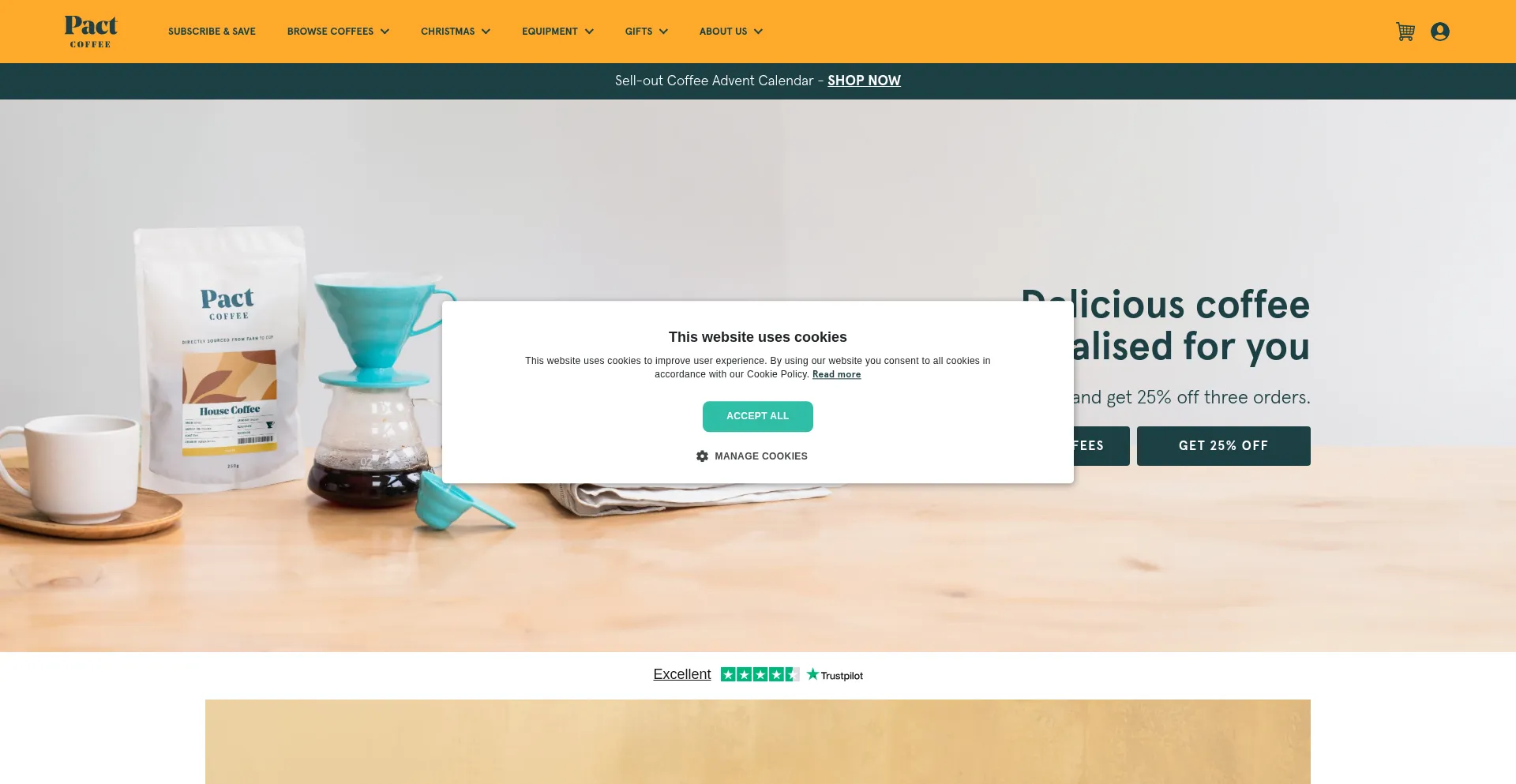 The website implements cookie consent mechanisms in compliance with privacy regulations such as GDPR or CCPA. This demonstrates that pactcoffee.com adheres to data protection standards and provides users with control over personal data collection practices.