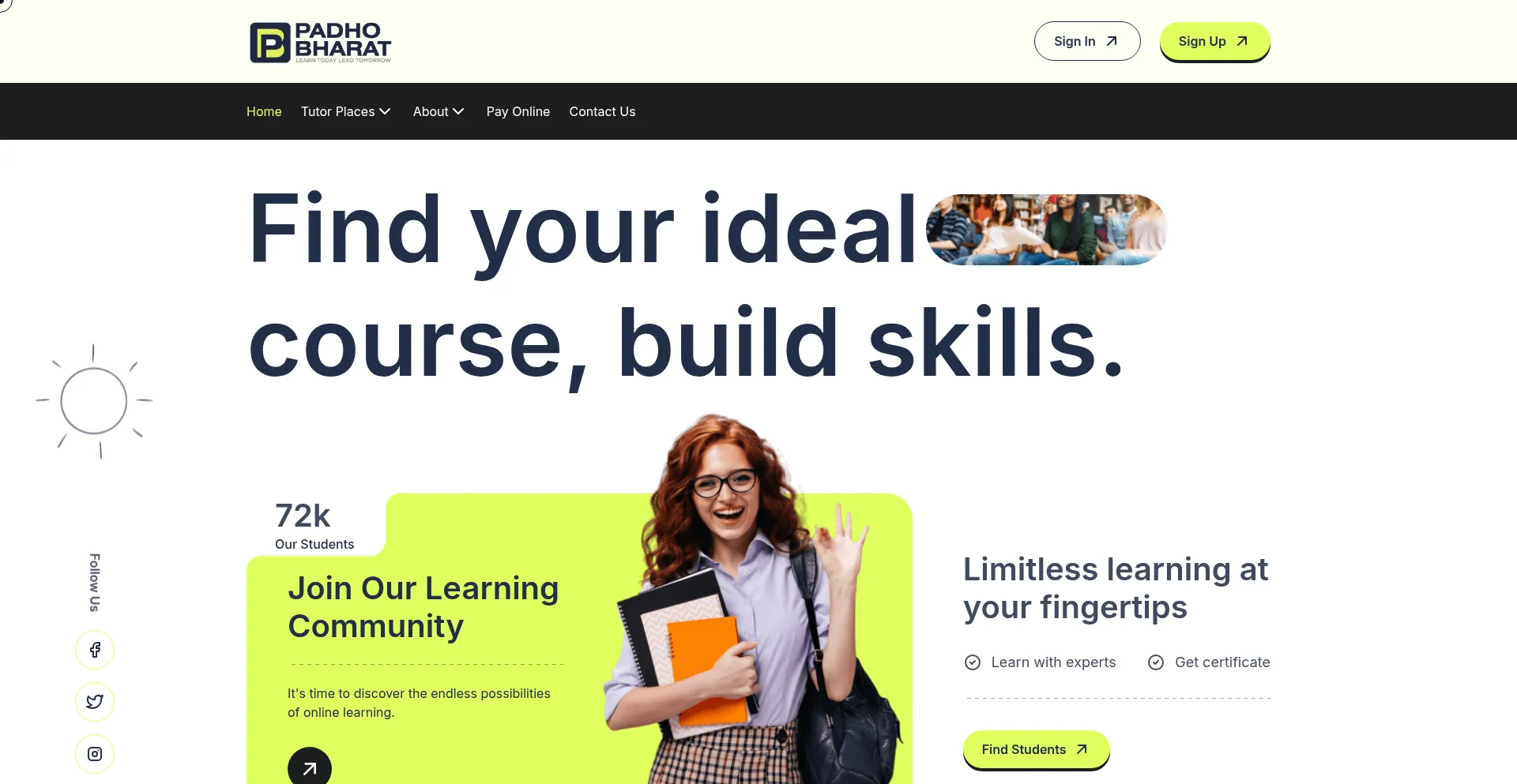 Discover qualified home tutors and online classes in your city. Padho Bharat connects students with verified teachers for personalized learning experiences. Book your tutor today!